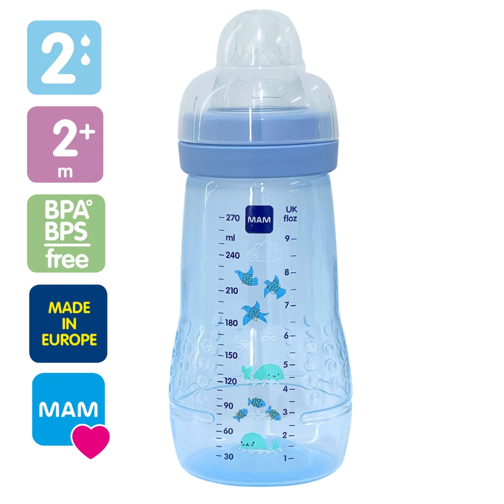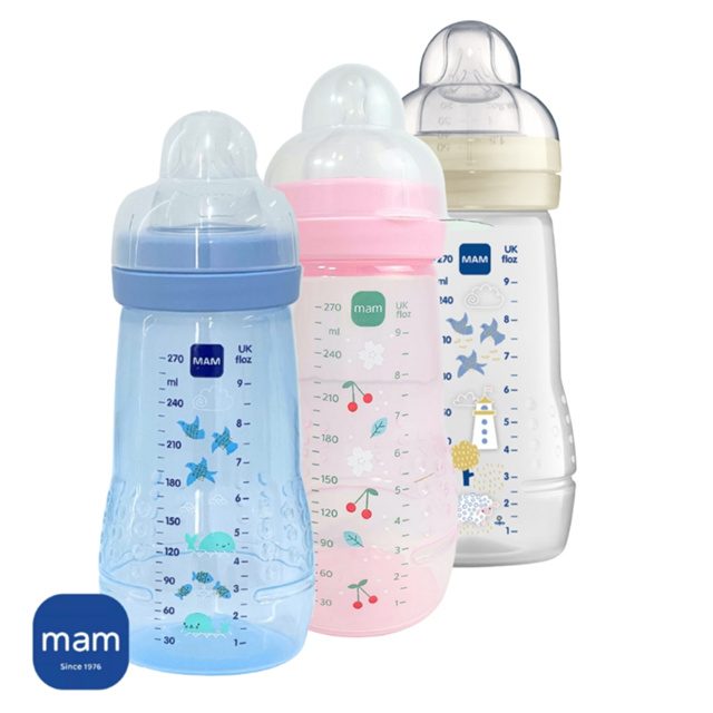 Mamadeiras para Bebe MAM 270 ml com Bico Silicone Fluxo Médio N2 Menino Menina Neutra