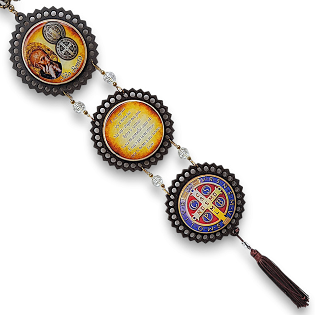 Mandala Trio São Bento Resinada Imagem Religiosa Para Parede Porta