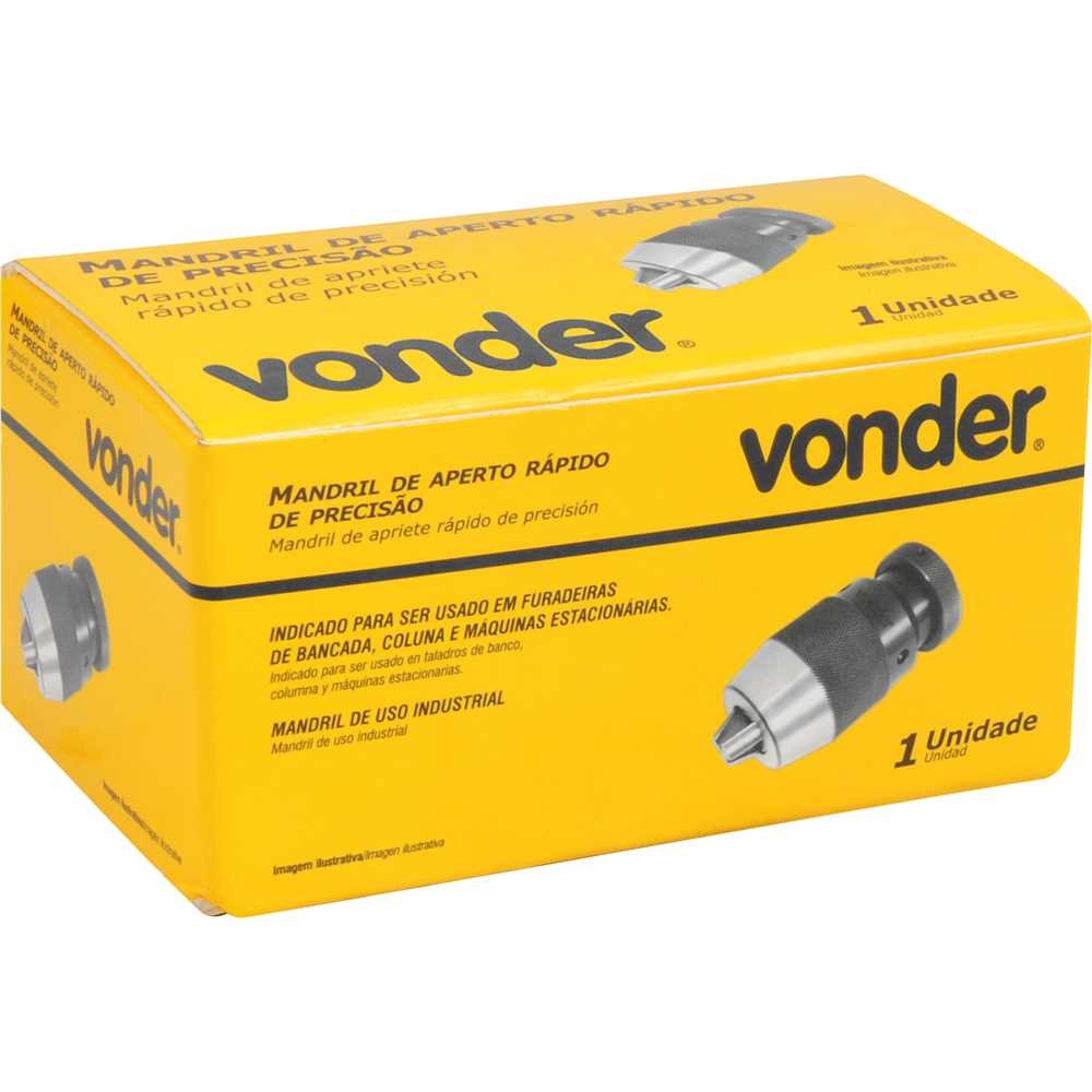 O mandril de aperto rápido VONDER com capacidade de 1 mm a 16 mm é ideal para uso em furadeiras de bancada, coluna e outros equipamentos estacionários, oferecendo agilidade na troca de brocas e acessórios. Seu sistema de aperto rápido permite fixação e liberação manual, sem necessidade de chave, otimizando o tempo de trabalho. Fabricado com capa metálica resistente e encaixe tipo cone B18, garante firmeza, durabilidade e compatibilidade com diversos equipamentos. Indicado para aplicações industriais e profissionais que exigem praticidade e precisão. Características: Modelo: Aperto Rápido Referência: 6670116018 Material da capa: Metal Capacidade mínima: 1,0 mm Capacidade máxima: 16,0 mm Medida do cone: B18 Massa aproximada: 1,24 kg Benefícios: Troca rápida de brocas sem uso de chave Ideal para máquinas estacionárias e furadeiras de coluna Alta durabilidade com capa metálica resistente Encaixe padrão B18, compatível com diversos equipamentos Facilita o trabalho e reduz o tempo de setup Conteúdo da embalagem: 1x Mandril de aperto rápido