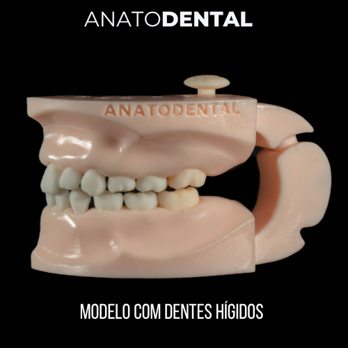 MANEQUIM DE TREINO ODONTOPEDIATRIA (HEMIARCADA) - Manequim Articulado permitindo realizar movimentos da mastigação; - Manequim Troquelizado permitindo fazer as trocas dos refis de dentes (hígidos e preparados/cariados) quando necessário; - Os modelos disponíveis em nossa loja, permite aos alunos/profissionais a melhorar suas técnicas restauradoras, podendo utilizar materiais como: Massinha de modelar, Cera ou Resina Composta para treinar anatomias dentárias. Descrição do Modelo: 1- Tipo: MODELO ODONTOPEDIATRIA - DENTES HÍGIDOS (Tamanho Real) Tamanho (aproximado): 9x5x3 (cm) Material: Resina Dentes: Superiores: - 61: Hígido - 62: Hígido - 63: Hígido - 64: Hígido - 65: Hígido - 26: Hígido Inferiores: - 71: Hígido - 72: Hígido - 73: Hígido - 74: Hígido - 75: Hígido - 36: Hígido 2- Tipo: MODELO ODONTOPEDIATRIA - DENTES PREPARADOS E CARIADOS (Tamanho Real) Tamanho (aproximado): 9x5x3 (cm) Material: Resina Dentes: Superiores: - 61: Classe IV - 62: Carie Distal - 63: Classe III (Mesial) - 64: Classe II (OD) - 65: Carie Oclusal - 26: Classe II (MOD) Inferiores: - 71: Fraturado - 72: Classe IV - 73: Classe IV - 74: Classe I - 75: Carie Distal - 36: Classe V e Carie Mesial Observação: 1- Os dentes são sólidos, permitindo ao usuário criar cavidades e afins com o uso de uma alta rotação; 2- Ao usar resina composta ou qualquer material resinoso para esculpir os dentes, antes, isolar o modelo (Isolante de Resina Acrílica ou Vaselina), afim de não aderir o material ao modelo, evitando de danificar o modelo na remoção do material.