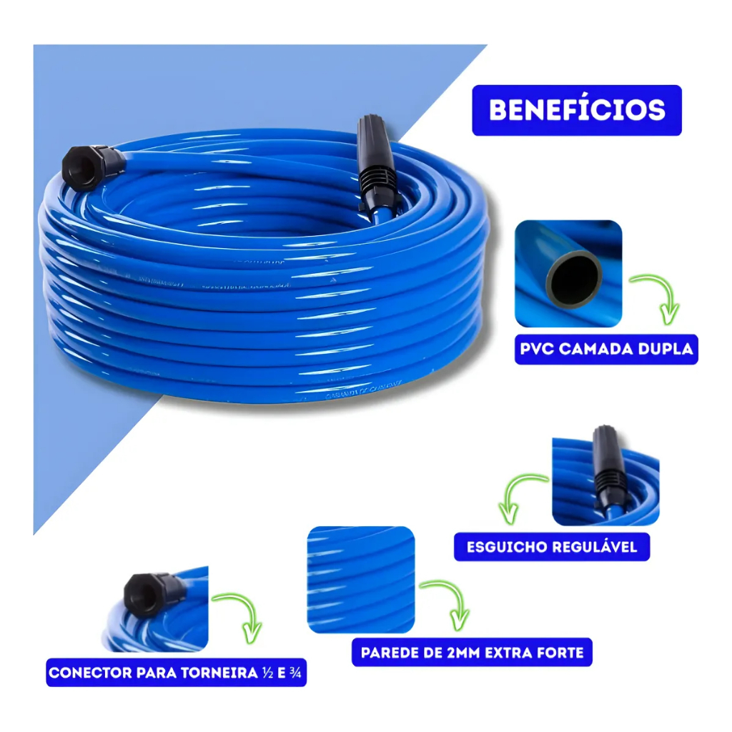 | Mangueira De Jardim 5/10/15/20/30 Metros Dupla Camada Pvc Flexível ... | R$ 19,90 | 33% | 4.6/5 | 45 |