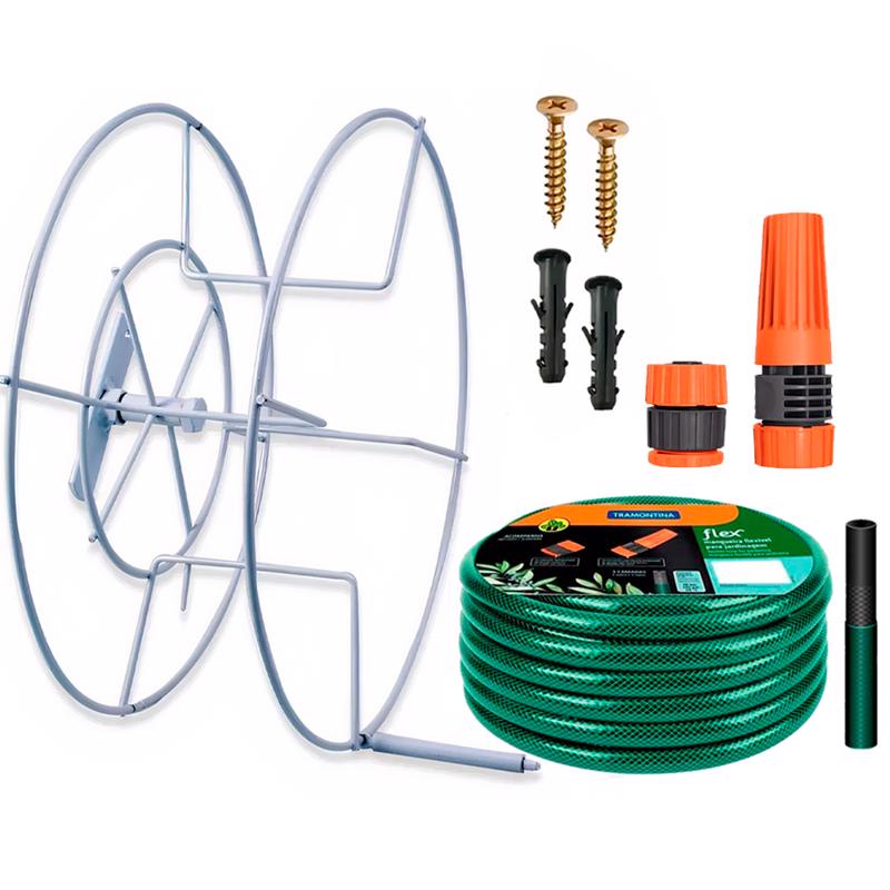 Mangueira 30 Metros + Suporte Enrolador de Mangueira Giratório EVALD