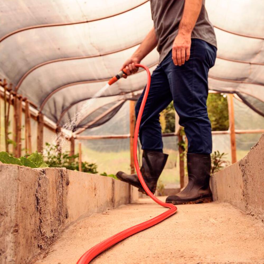 Mangueira Antitorção Multi ATS 1/2 Pol Tramontina para Jardim em PVC 3 Camadas 30 m com Engates Rápidos e Esguicho 79248303 TRAMONTINA Otimize suas tarefas de irrigação com a mangueira antitorção Multi ATS 1/2 polegada Tramontina para jardim em PVC 3 camadas 30 metros com engates rápidos e esguicho. Com ela você realiza a irrigação do gramado, horta ou jardim de maneira eficaz. Um produto altamente resistente e que não dobra, mantendo o fluxo de água constante. Tramontina facilitando suas tarefas na jardinagem. Vantagens: Mangueira com alta flexibilidade e fácil manuseio. Não torce e não dobra permitindo fluxo constante. Maior resistência, possui 3 camadas distintas: interna em PVC, intermediária em fio de poliéster trançado e externa em PVC. Esguicho com prático sistema de regulagem do fluxo d'água através do regulador frontal. O esguicho é conectado em mangueiras de 1/2", 5/8" e 3/4" através de sistema de engate rápido. Uso: Recomendada para uso doméstico ou profissional na jardinagem, em situações com pressão da água de até 14 bar [203 psi]. Para aumentar a durabilidade da mangueira, não deixá-la exposta ao sol após o uso. - A temperatura máxima de trabalho da água deve ser 50 °C. Use o enrolador de mangueira Tramontina para guardar a mangueira. Para descarte dos produtos e embalagens siga as orientações de reciclagem vigentes. Acompanha: 01 esguicho com jato regulável 02 engates rápidos 01 adaptador fêmea com rosca de 3/4 Pol e redução de 1/2 Pol. Ref: 79248303 Marca: TRAMONTINA Garantia: 03 Meses *Imagens Meramente Ilustrativas.