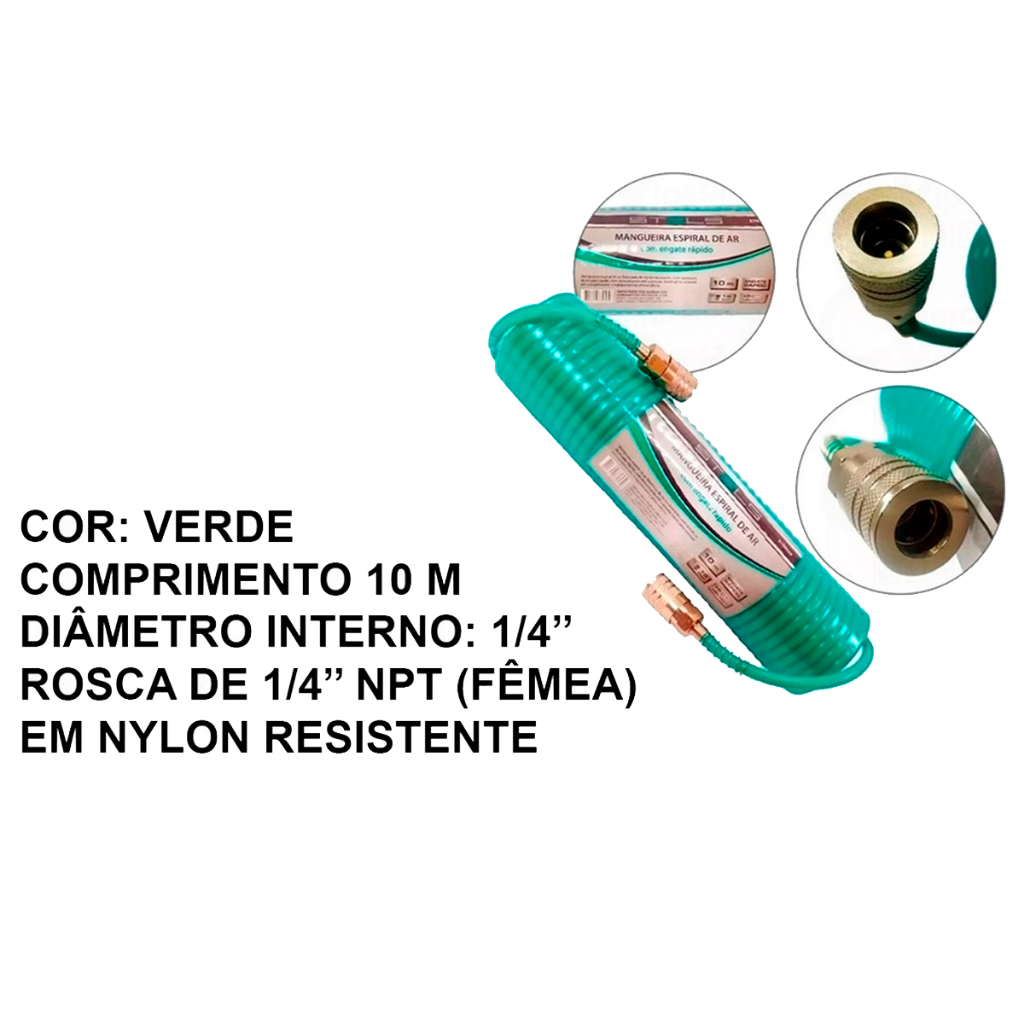 Mangueira Ar Espiral 10m Engate Rápido Femea Para Pistola Compressor Ar Direto Profissional