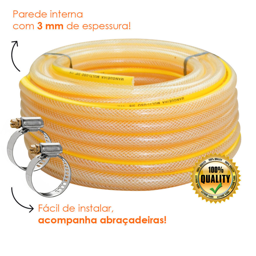 mangueira de cozinha a gas Fogão Botijão GLP Trançada 3/8 x 3 mm + 2 Abraçadeiras 1/2/3/4/5 Metros