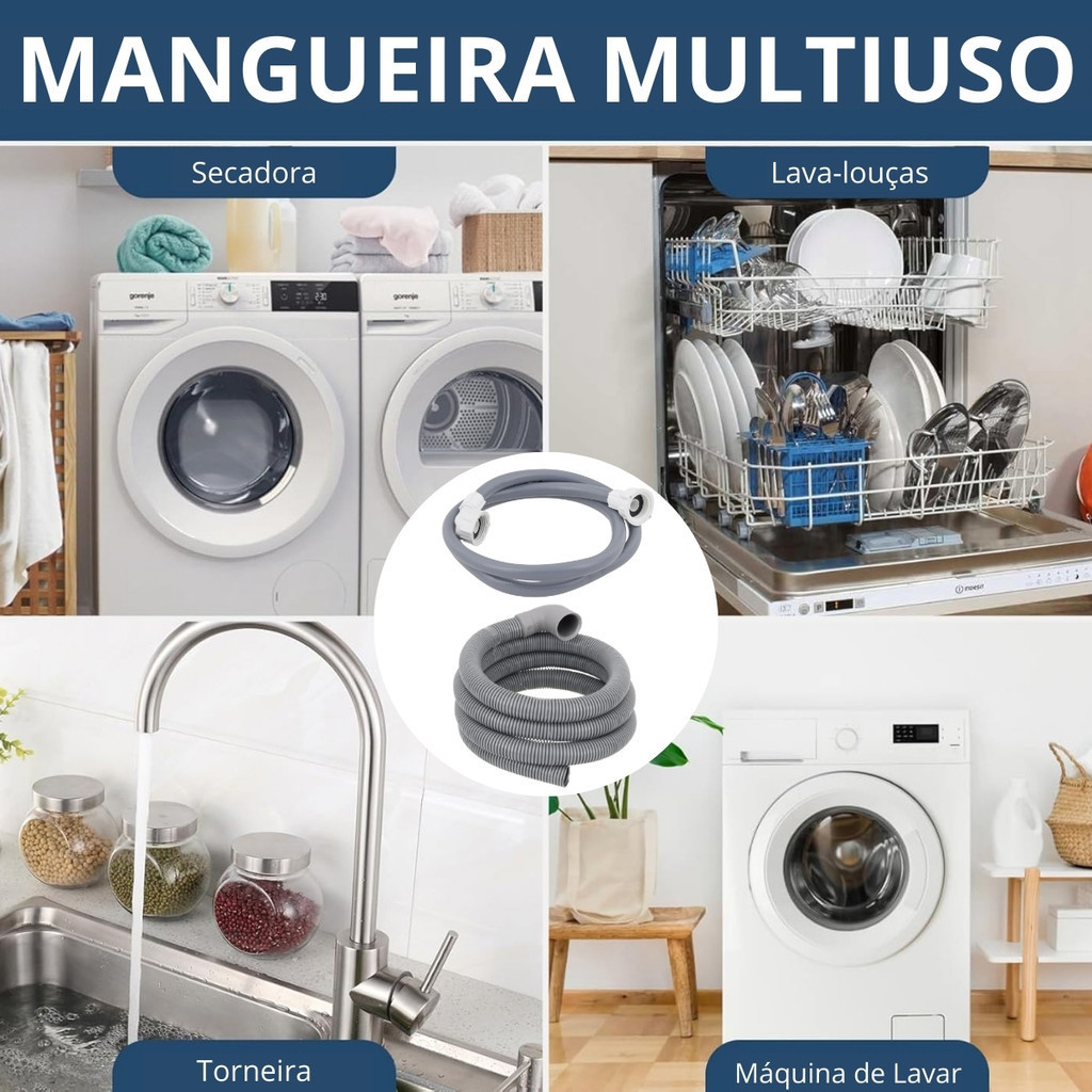 Mangueira de Entrada + Saída 3 Metros Máquina de Lavar