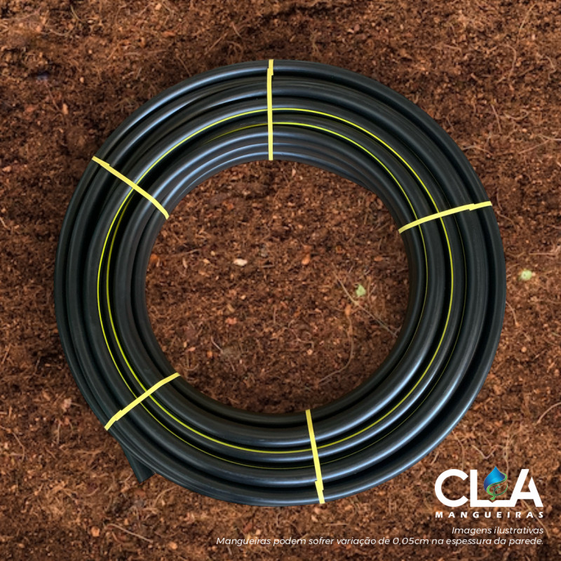 Mangueira de Irrigação 1/2" Reforçada Polietileno Preto Rolo com 25 Metros Selo Amarelo