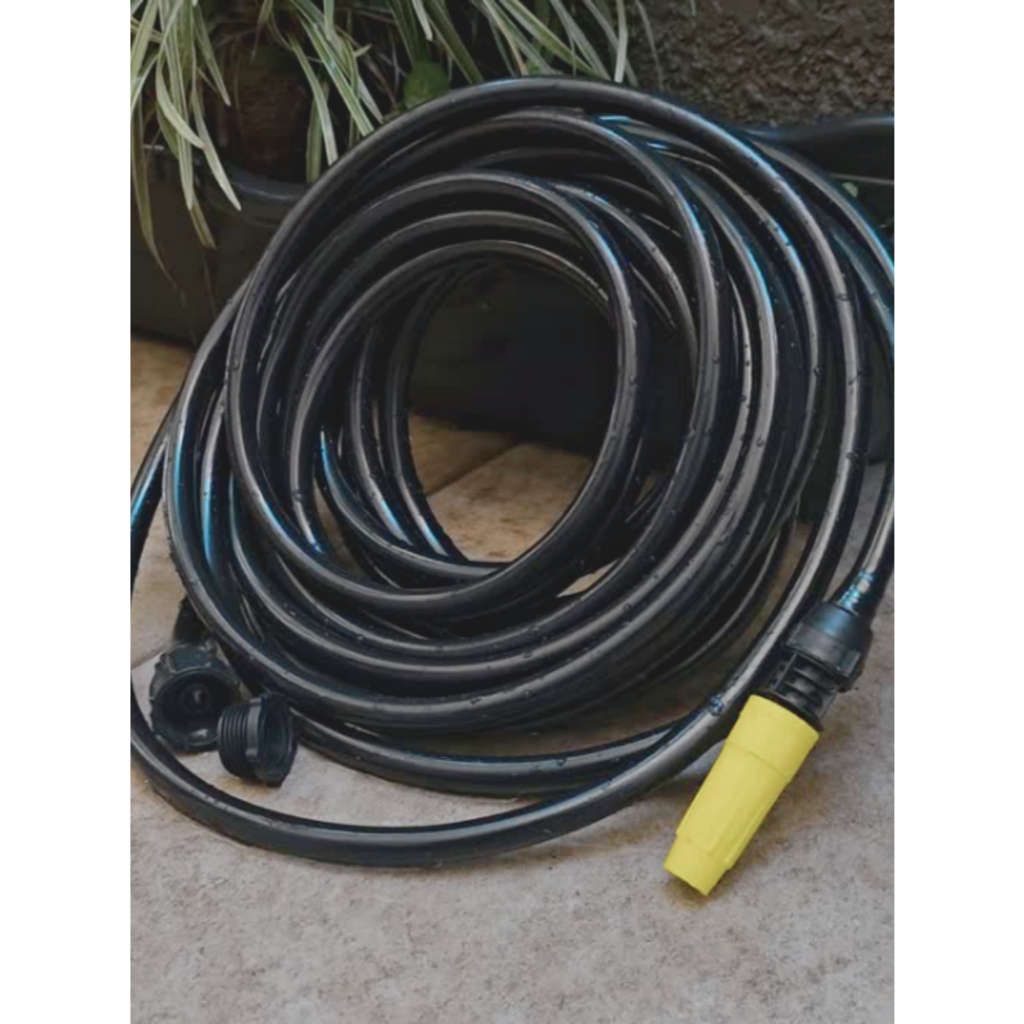 É uma prazer ter você por aqui, se tiver dúvidas entre em contato conosco através do chat. Mangueira Preta Siliconada revestida por dupla camada 10 metros Flexível Resistente completa pronta para usar, cor Preta. Mangueira flexível e de fácil manuseio; possui 10 metros de comprimento; recomendada para situações de uso com pressão da água de até 6 BAR. Características: - Possui 2 camadas distintas - Acompanha jogo com engates rosqueados e esguicho - Parede interna reforçada com 1,5 mm - Temperatura de trabalho +5 a +50 graus celsius - Montados com esguicho e conexão de torneira troca rápida - Flexível e fácil de manusear e maciez Conteúdo: 1 Mangueira Siliconada Flexivel. Pronta pra usar!