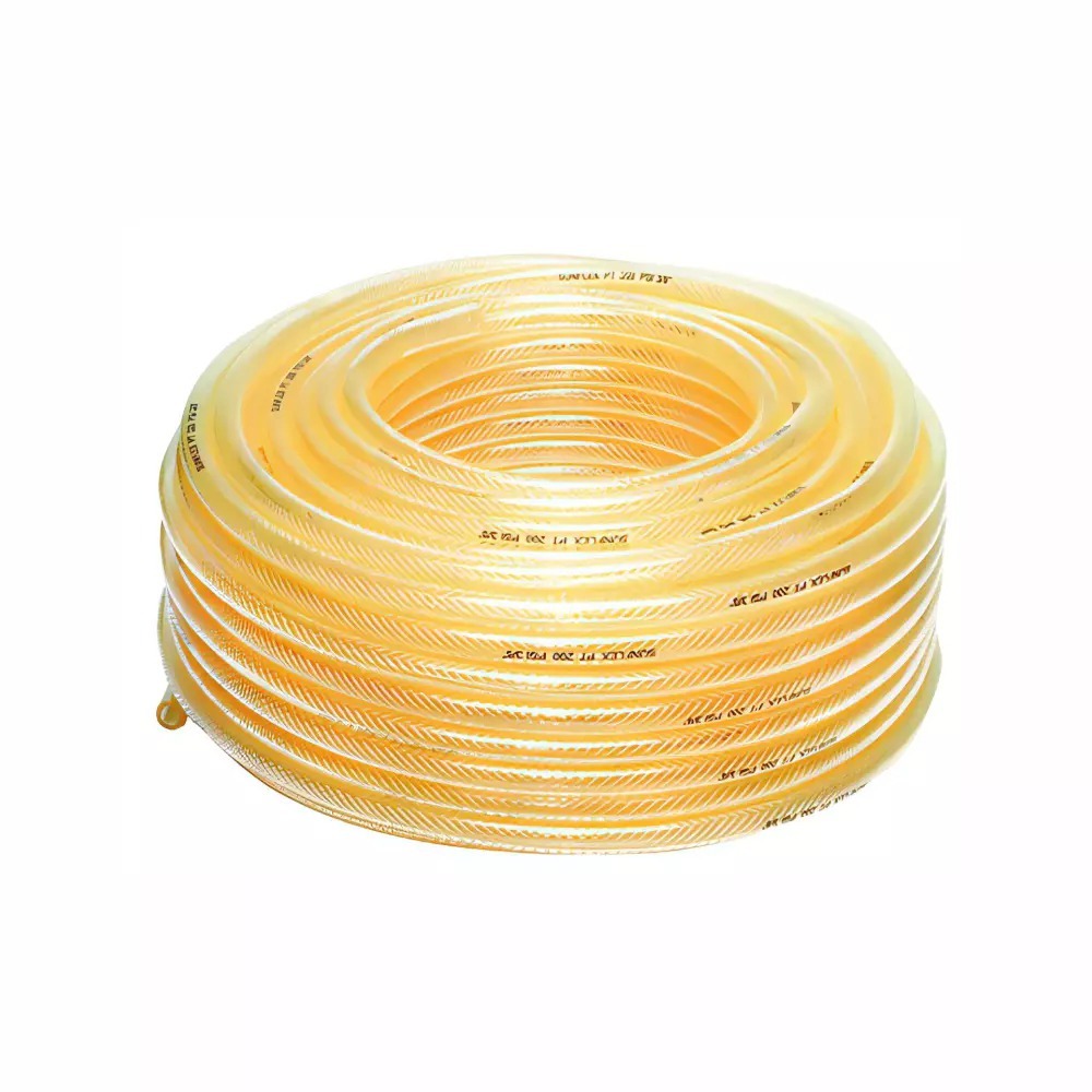 A mangueira multiuso é fabricada em PVC cristal amarelado com três camadas: a interna e a externa em PVC e a intermediária com reforço de fios de poliéster. Sua superfície é lisa e resistente a riscos, possui excelente resistência a intempéries, ao ozônio, à abrasão e aos raios ultravioletas. Resistente ao ressecamento e à quebra.