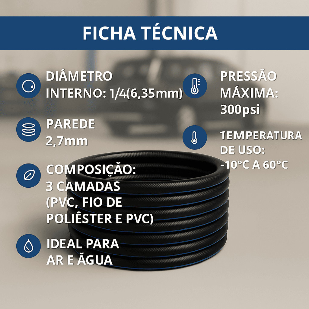 Mangueira Para Compressor 20 Metros PT300 1/4 De Agua Ar Comprimido Pneumática Borracha Borracharia