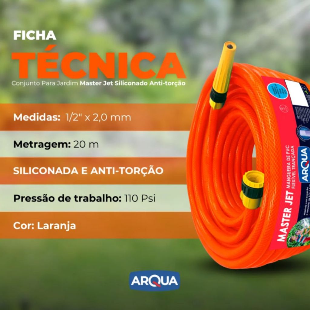 Mangueira Para Jardim ARQUA de 1/2 Reforçada Anti-Torção Kit Esguicho e Conector Master Jet Trançada 20m