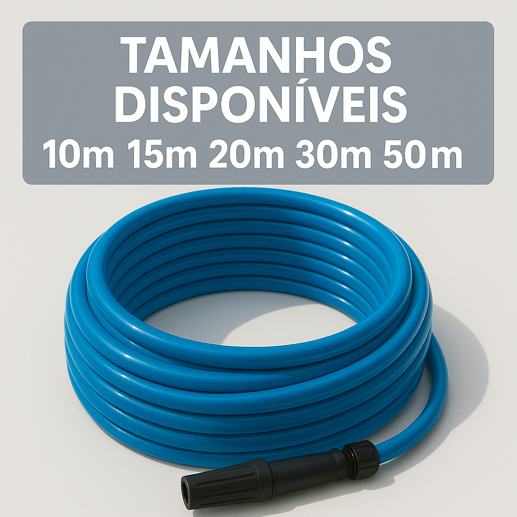 Chega de mangueiras que quebram ou enrolam facilmente! A Mangueira de Jardim Reforçada Flexível foi desenvolvida para oferecer resistência, praticidade e durabilidade, tornando o cuidado com o seu jardim muito mais fácil e eficiente. 2. Benefícios e características Material reforçado que evita furos e rachaduras Super flexível, facilitando o manuseio e evitando torções Ideal para regar jardins, lavar calçadas, carros e áreas externas Acompanha esguicho e conectores, pronta para uso imediato Resistente à pressão da água e às variações de temperatura Leve, prática e fácil de guardar 3. Especificações técnicas Material: PVC reforçado de alta qualidade Cor: Azul translúcido (padrão de jardim) Acessórios inclusos: Esguicho e conectores de engate rápido Uso: Residencial, jardinagem, limpeza e uso doméstico geral 4. Tabela de medidas (comprimentos disponíveis) Comprimento Indicação de uso10 metros Pequenos espaços e varandas 15 metros Jardins médios e quintais 20 metros Áreas amplas e uso frequente 30 metros Jardins grandes e lavagem de veículos 50 metros Uso profissional e áreas extensas 5. Cuidados e orientações de uso Evite arrastar sobre superfícies ásperas para preservar a camada externa Após o uso, desligue a água e drene completamente o conteúdo interno Armazene enrolada, em local protegido do sol intenso Não exponha à chama direta nem utilize produtos químicos agressivos Tenha mais praticidade e eficiência no seu dia a dia! Adquira agora a Mangueira de Jardim Reforçada e Flexível, pronta para uso, e garanta resistência, durabilidade e conforto em cada rega.