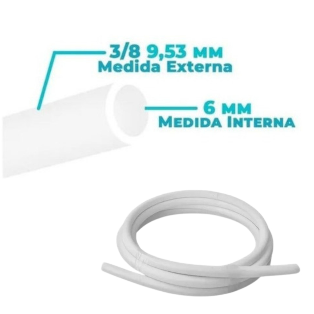 Mangueira 3/8 9,53mm Atóxica Branca para instalações de Purificadores de água, Bebedouros, Filtros, Chopeira, Máquina de café, Distribuidores de água, etc ** 3/8 polegadas = 9,53mm diâmetro externo Compatível com todos os modelos de Purificadores Soft Everest (Star, Slim, Soft, Fit, Baby) Compatível com diversos modelos de Purificadores de Água (Consultar manual de instalação) Mangueira atóxica PEBD + EVA 9,5 x 6,3 x 1,6mm Pressão máxima: 10 bar PRODUTO NOVO // ENVIO IMEDIATO IMPORTANTE Informamos que não nos responsabilizamos por adaptações.