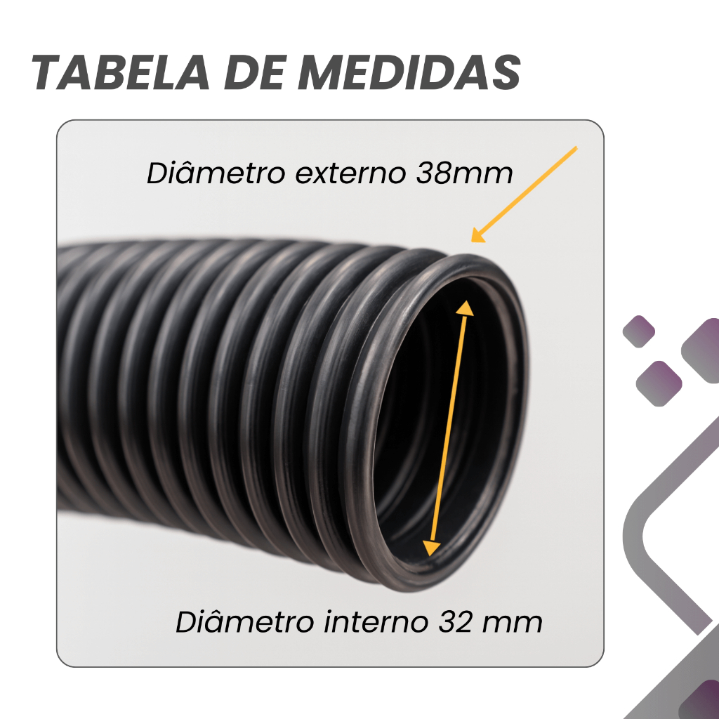 "Mangueira Preta para Aspirador 5 Metros 32mm: potência estendida para limpeza profunda com encaixe universal" A Mangueira para Aspirador de Pó 5 Metros 32mm é a escolha ideal para quem busca versatilidade, resistência e compatibilidade ampla. Com diâmetro interno de 32 mm e externo de 38 mm, ela se adapta a diversos modelos de aspiradores, proporcionando desempenho superior na aspiração de pó e líquidos. Fabricada em plástico resistente, oferece 5 metros de alcance, permitindo maior mobilidade e eficiência em qualquer ambiente. BENEFÍCIOS Alcance ampliado com 5 metros de comprimento, ideal para áreas maiores sem necessidade de deslocar o aspirador. Compatibilidade com aspiradores que utilizam mangueiras de 32 mm. Material reforçado em plástico resistente, durável contra torções e impactos. Acabamento impecável, que garante vedação eficiente e evita perda de sucção. Design corrugado flexível, facilitando o manuseio em cantos e superfícies irregulares. APLICAÇÕES Limpeza de residências com muitos cômodos, sem precisar trocar de tomada ou mover o aspirador constantemente. Aspiração de carros, vans e utilitários, alcançando áreas internas com facilidade. Higienização de escritórios e ambientes comerciais, com mobilidade entre mesas e móveis. Uso em áreas externas como varandas, garagens e quintais. Ideal para ambientes com animais de estimação, onde o acúmulo de pelos exige maior alcance e eficiência. PROBLEMAS SOLUCIONADOS Mangueiras curtas que limitam o alcance e tornam a limpeza cansativa. Incompatibilidade com modelos comuns, gerando frustração e perda de tempo. Materiais frágeis que racham ou entortam com pouco uso. Perda de potência por vedação inadequada ou encaixe impreciso. Dificuldade em limpar cantos e áreas estreitas, por falta de flexibilidade. PERGUNTAS FREQUENTES 1 - Qual o comprimento da mangueira? R: 5 metros. 2 - Qual o diâmetro da mangueira? R: Diâmetro interno de 32 mm e externo de 38 mm. 3 - Acompanha bicos ou acessórios? R: Não. Esta descrição refere-se apenas à mangueira. GARANTIAS E TROCAS Produto com qualidade comprovada, fabricado com plástico resistente e acabamento técnico. Trocas e devoluções são aceitas mediante apresentação da nota fiscal e produto intacto na embalagem original. Atende aos padrões de qualidade exigidos para acessórios de aspiradores, com controle rigoroso de fabricação. CONSIDERAÇÕES FINAIS Compre agora antes que a limpeza volte a ser um problema. Se você já investiu em um bom aspirador, não deixe que uma mangueira fraca comprometa tudo. Garanta a sua e junte-se a quem exige eficiência total em cada detalhe.