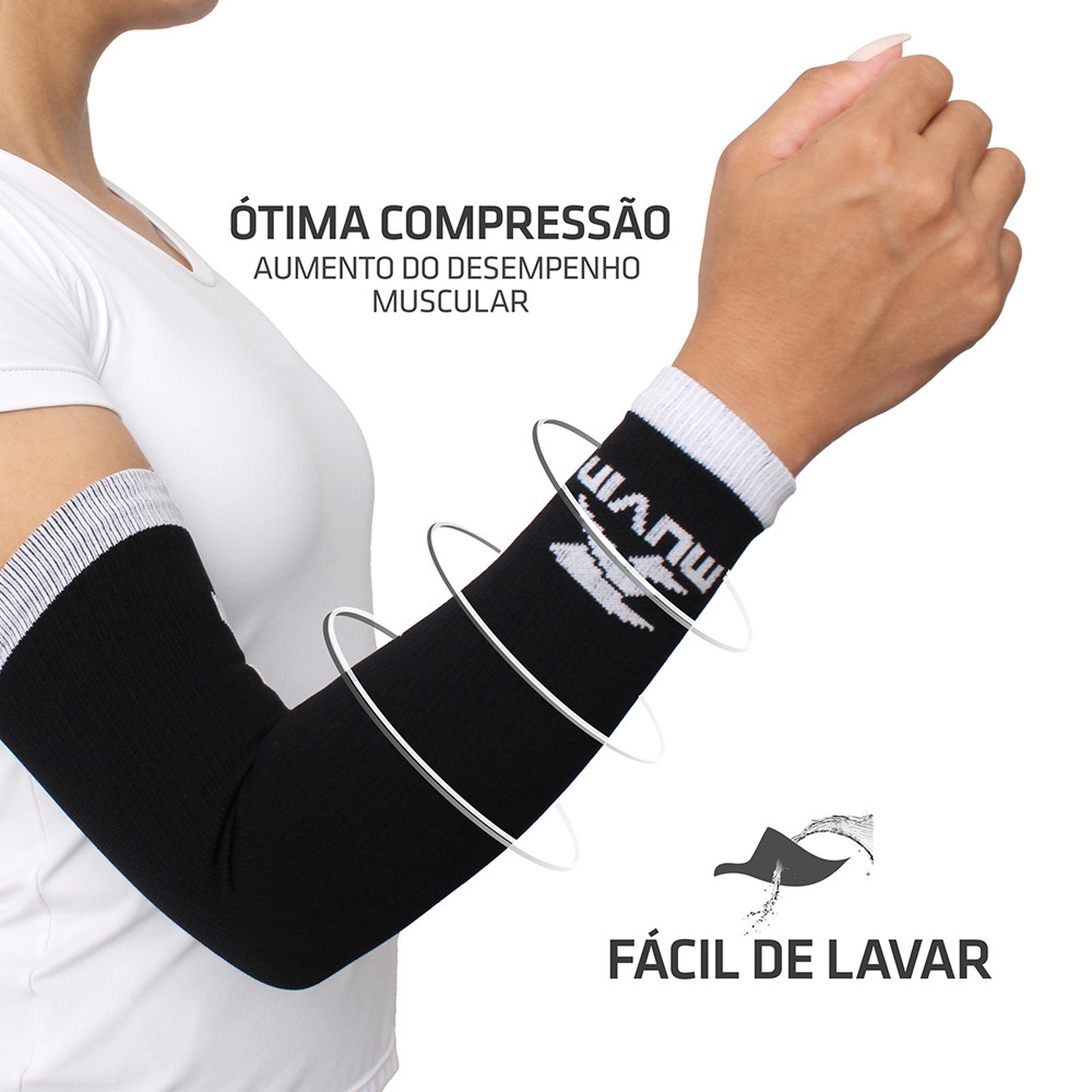 <p>COMPRESSÃO: Com a função de comprimir os músculos do braço, os Manguitos são utilizados em diversos esportes, pois possibilitam a diminuição da vibração dos músculos, o que reduz a sensação de cansaço e aumenta o desempenho muscular <br /> <br /> BOA RESPIRABILIDADE: Com 95% de Poliamida e 5% de Elastano, os manguitos possuem ótima respirabilidade, pois foram desenvolvidos com material específico para trazer desempenho e conforto em práticas esportivas. Têm ótimo ajuste e não possuem costuras <br /> <br /> PROTEÇÃO: Com o intuito de proteger a pele do sol ou esquentar os braços em dias frios, os manguitos também são indicados para caminhada, corrida e até mesmo ciclismo. São extremamente confortáveis e leves, já que pesam aproximadamente 40 gramas <br /> <br /> EFEITOS PÓS-EXERCÍCIOS: Após a realização das atividades é possível notar uma sensação menor de cansaço, pois como os manguitos comprimem a musculatura, isso aumenta o fluxo sanguíneo. O resultado é uma melhor oxigenação e remoção de lactato <br /> <br /> ÓTIMO AJUSTE: O Manguito Longo Arrow traz ótimo ajuste, é unissex, não possui costuras e está disponível nos tamanhos P, M e G. O material de composição proporciona elasticidade para se adequar a qualquer pessoa que queira utilizá-lo<br /> <br /> Os Manguitos de Compressão Arrow da Muvin foram desenvolvidos com material específico para trazer desempenho e conforto em práticas esportivas. Com composição de 95% Poliamida e 5% Elastano, é um item leve, sem costuras, com ótimo ajuste e que possibilita uma excelente respirabilidade.<br /> <br /> Os manguitos de compressão são utilizados no voleibol com intuito de proteger e aliviar o contato da bola ao braço na recepção de manchete. Eles também comprimem os músculos do braço e, assim, diminuem a vibração deles durante as atividades, o que reduz a sensação de cansaço e, consequentemente, aumenta o desempenho muscular. Eles também são utilizados em atividades de caminhada, corrida e até mesmo no ciclismo com intuito de proteger a pele do sol ou esquentar os braços em dias frios.<br /> <br /> Os efeitos pós-exercício também são notados, como por exemplo, uma sensação menor de cansaço, já que comprimem a musculatura, aumentando o fluxo sanguíneo, o que confere melhor oxigenação e remoção de lactato, responsável pela regeneração muscular.<br /> <br /> O Manguito Longo Arrow traz ótimo ajuste, é unissex, não possui costuras e está disponível nas cores Preto, Branco, Amarelo e Laranja, e nos tamanhos P, M e G. Esse modelo também apresenta desenhos em cores contrastantes à predominante, o que garante bastante estilo à peça. O material de composição proporciona elasticidade para se adequar a qualquer pessoa que queira utilizá-lo. 95% Poliamida / 5% Elastano</p>