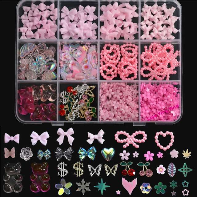 Charms de Arte para Unhas 3D,com Ursos Kawaii,Acessórios de Liga Metálica,Cerejas,Borboletas,Laços Rosa,Flores e Strass Vantagens do produto: O que você receberá: 12 Compartimentos/ Caixa de Charms de Arte para Unhas Mistos, com Ursos Kawaii, Acessórios de Liga Metálica, Cerejas, Borboletas, Laços Rosa, Flores e Strass Uma variedade de decorações de unhas: Existem diversos estilos de decorações de unhas 3D, incluindo borboletas metálicas, laços rosa, flores delicadas, pérolas em formato de coração, cerejas, ursinhos fofos e outras decorações para atender às suas diversas necessidades de design DIY. Ótima quantidade e vários estilos: Coleção de várias formas e estilos, requintada e de alta qualidade, pode caber em diferentes tamanhos e designs de unhas. É o suficiente para fazer sua arte de unhas e artesanato. Qualidade premium: Os nossos acessórios de nail art são feitos de resina de alta qualidade são duráveis e duráveis. O efeito 3D adiciona um toque de glamour à sua arte de unhas. Uso versátil: não limitado à arte de unhas, estes pingentes de arte de unhas coloridos para unhas têm uma ampla gama de aplicações. Use-os para decorar capas de celular, roupas, espelhos de maquiagem, sapatos, cartões de saudação, tudo ou criar artesanato e joias DIY. Mercadoria Especificação: Acessórios de arco Sweet Dream Tamanho: 8 x 11 cm (O tamanho da embalagem é de cerca de 18x20 cm) Cor: tema rosa Material: Resina de alta qualidade Prazo de entrega: Dentro de 24 horas em dias úteis