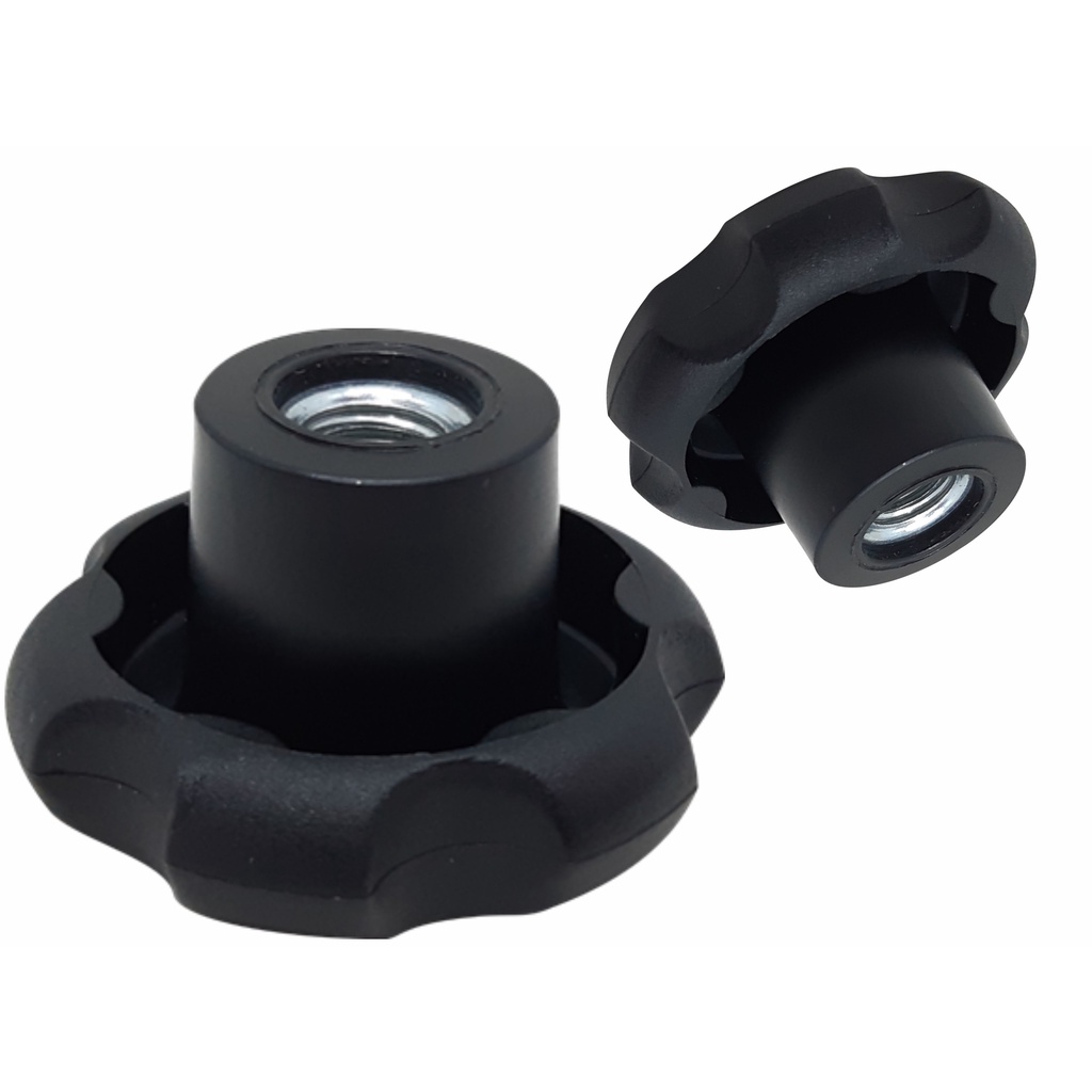 Manipulo Fêmea M8 Modelo Margarida 10 Pçs Material: Polipropileno Cor: Preta Acabamento superficial: Texturizado Características: Boas propriedades mecânicas Boa resistência ao impacto Excelente resistência química Media resistência ao calor ƒ° 50oC Aplicações: Maquinas, equipamento e dispositivos que requerem regulagem manual, e/ou fixação das partes moveis. Nuvem De Tags: Manípulo em estrela, termoplástico preto, porca manípulo, modelo margarida, regulagem manual, maquinas, equipamentos, fixação para moveis.