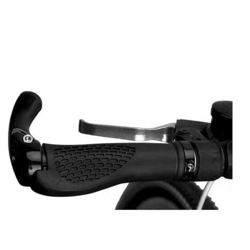 Descrição MANOPLA ANATÔMICA PARA BIKE COM BAR ENDS Manopla Anatômica é ideal para os ciclistas que buscam uma melhor pegada e conforto na hora de pedalar permitindo a mudança de posição das mãos facilmente. Seu formato ergonômico permite uma melhor posição das mãos do atleta evitando dores indesejáveis, seja em pedaladas mais curtas ou mais longas. Além disso, possui um visual e cores muito bonitas. O grande diferencial nesta manopla está no fato de já vir com o bar end integrado tornando a manopla e o bar end uma peça única compacta e resistente. Compatível com guidões de 19,5mm a 22,2mm. Fácil instalação. Especificações: - Formato ergonômico: maior conforto para as mãos. - Manopla com bar end integrado. - Acompanha peças de acabamento. - Comprimento: 14cm (140mm). - Cor: preto com detalhes cinzas.