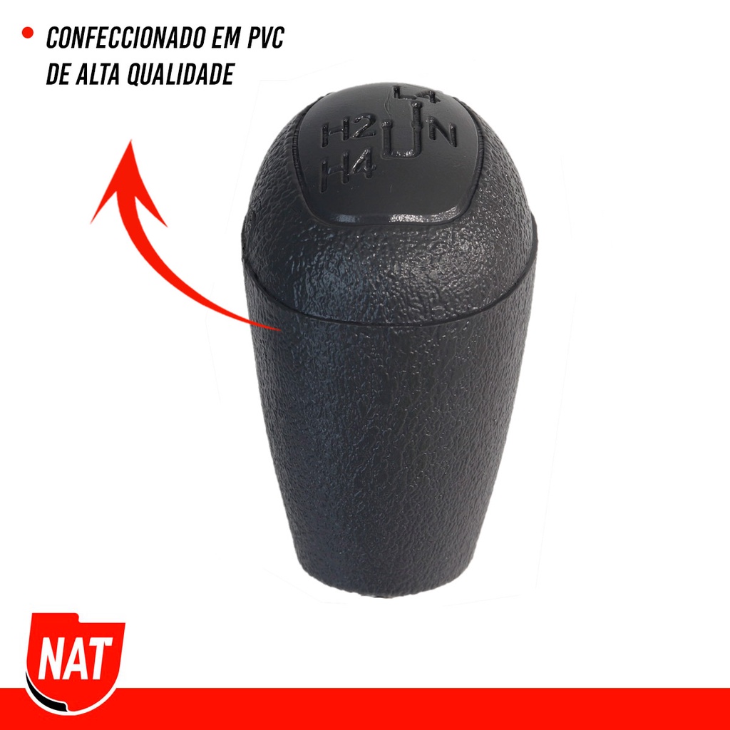 Manopla + Coifa Toyota Hilux E Sw4 Automático 2006 Até 2015 - Reduzida. O produto é composto por uma Manopla de Câmbio da NAT confeccionado em PVC de alta resistência e a coifa confeccionada em material ecológico com costura reforçada de alta qualidade. * Escolha a cor/acabamento antes de finalizar a compra. Informações: * Para o Modelo Toyota Hilux E Sw4 Automático 2006 Até 2015 - Reduzida. * Produto Nacional. * Acabamento Sofisticado. * Ótimo acabamento, emborrachado. * Instalação simples, rápida e intuitiva. * Para Câmbio Manual. * material ecológico de alta qualidade. * Costura Reforçada de alta qualidade. Veículos Compatíveis: * Modelo: Hilux 2006 Até 2015. * Ano: 2006, 2007, 2008, 2009, 2010, 2011, 2012, 2013, 2014 e 2015. * Modelo: SW4 2006 Até 2015. * Ano: 2006, 2007, 2008, 2009, 2010, 2011, 2012, 2013, 2014 e 2015. Dados Técnicos: * Peso: 0,350 kg. * Altura: 25 cm. * Comprimento: 15 cm. * Largura: 7 cm. Cores Disponíveis: * Preta. * Cinza. Conteúdo * 01 Kit Manopla + Coifa. * 01 Manual de Garantia. * 01 Nota Fiscal. Garantia: 3 meses * Imagens meramente ilustrativas. Atenção: Para compras realizadas em nome de Pessoa Jurídica/CNPJ, não serão faturadas, no momento não estamos gerando nota para CNPJ, caso tenha interesse em efetuar compras com o CNPJ entre em contato com a fábrica. Por favor solicitamos que compre como pessoa física/CPF para que seus pedidos possam seguir conforme o programado e prazo passado. Sobre a Marca: A Indústria NAT tem orgulho de ser uma empresa nacional, com sua sede em São Paulo, que está há mais de 20 anos construindo uma história de sucesso no âmbito do desenvolvimento de peças automotivas que acompanham e solucionam as necessidades de consumo do mercado, com o mais alto padrão de qualidade, proporcionando o melhor custo-benefício aos consumidores e sempre buscando ser referência em sua atuação. Seus produtos são produzidos em território nacional e estão presentes em toda América Latina.