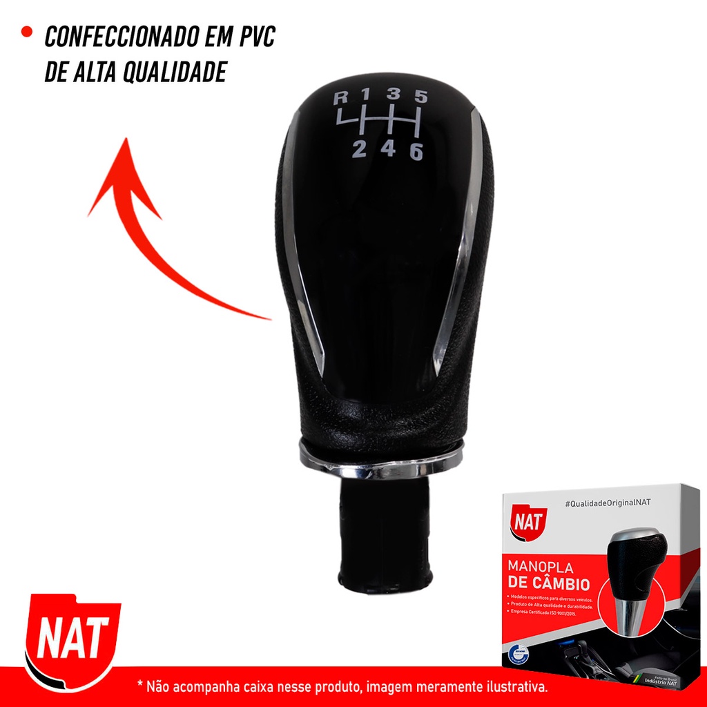 Manopla de Câmbio Chevrolet Novo Onix e Onix Plus 2020 Até 2023. A Manopla de Câmbio da NAT possui uma instalação simples e intuitiva, o produto é confeccionado em PVC de alta resistência. Informações: * Para o Modelo Chevrolet Novo Onix e Onix Plus 2020 Até 2023. * Produto Nacional. * Ótimo acabamento, emborrachado. * Instalação simples, rápida e intuitiva. * Para Câmbio Manual. Veículos Compatíveis: * Modelo: Novo Onix 2020 Até 2023. * Ano: 2020, 2021, 2022 e 2023. * Modelo: Onix Plus 2020 Até 2023. * Ano: 2020, 2021, 2022 e 2023. Dados Técnicos: * Peso: 200 Gramas. * Altura: 5 cm. * Comprimento: 5 cm. * Largura: 4 cm. Cores Disponíveis: *Preto. Conteúdo. * 01 Manopla de Câmbio. * 01 Nota Fiscal. Garantia: 3 meses. * Imagens meramente ilustrativas. Atenção: Para compras realizadas em nome de Pessoa Jurídica/CNPJ, não serão faturadas, no momento não estamos gerando nota para CNPJ, caso tenha interesse em efetuar compras com o CNPJ entre em contato com a fábrica. Por favor solicitamos que compre como pessoa física/CPF para que seus pedidos possam seguir conforme o programado e prazo passado. Sobre a Marca: A Indústria NAT tem orgulho de ser uma empresa nacional, com sua sede em São Paulo, que está há mais de 20 anos construindo uma história de sucesso no âmbito do desenvolvimento de peças automotivas que acompanham e solucionam as necessidades de consumo do mercado, com o mais alto padrão de qualidade, proporcionando o melhor custo-benefício aos consumidores e sempre buscando ser referência em sua atuação. Seus produtos são produzidos em território nacional e estão presentes em toda América Latina.