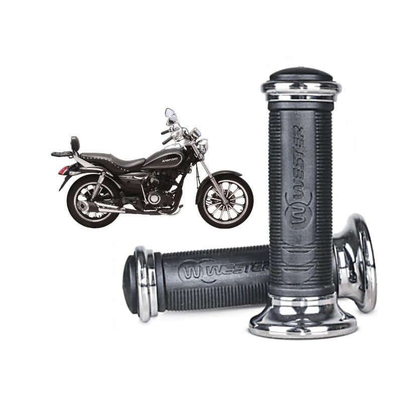 A manopla Wester Pro é universal; ela foi desenvolvida para motociclistas que buscam conforto, resistência e acabamento completo no guidão. Fabricada em borracha de alta qualidade. Contém: 1 par de manopla preta com anel cromado em plastico