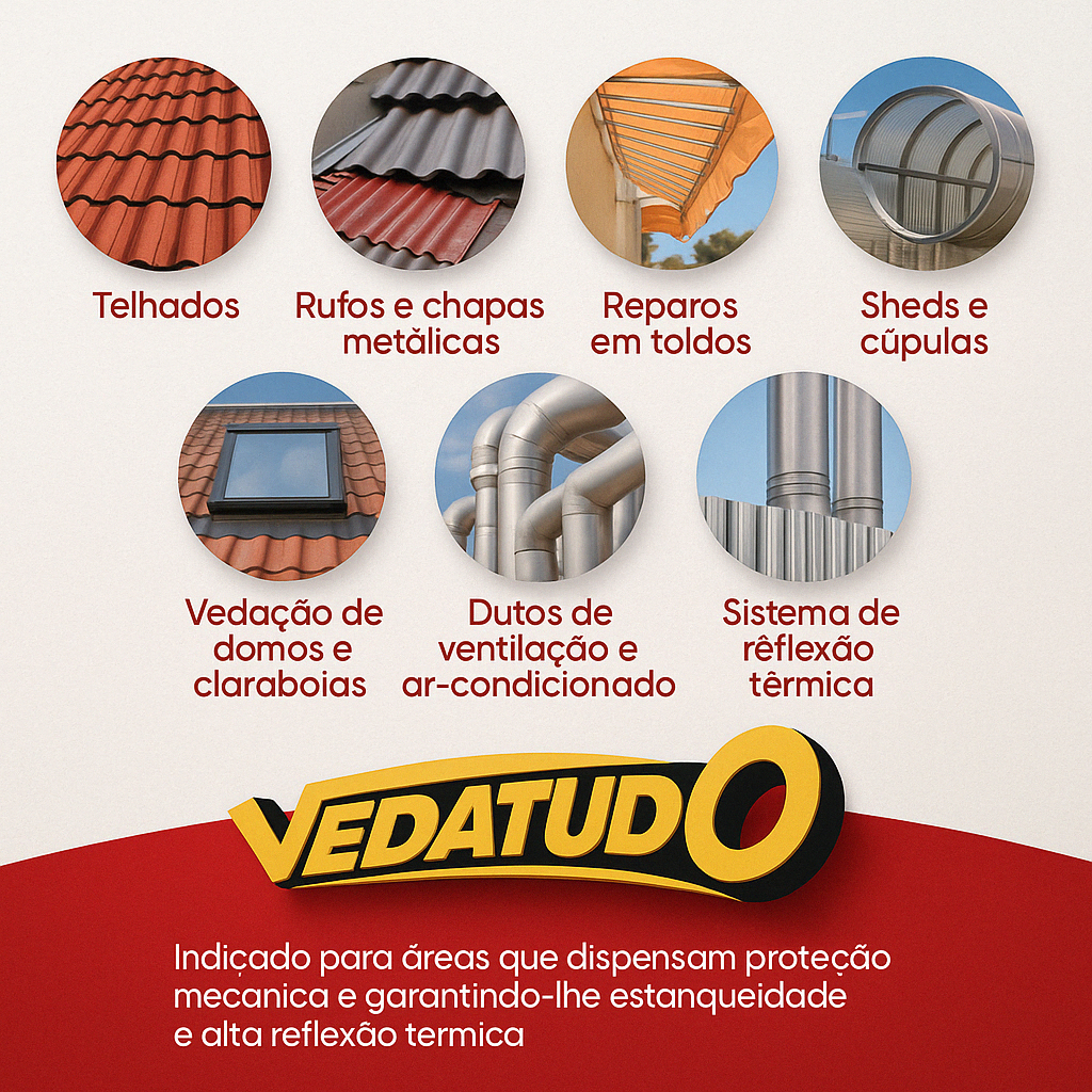 TODOS OS TAMANHOS POSSUEM 10 METROS DE COMPRIMENTO A Manta Asfáltica Auto Adesiva é uma Membrana Asfáltica com alto teor de Elastômeros, Proporcionando elevada adesivagem. Protegida com um filme de alumínio que permite sua exposição a intempéries e aos raios solares, sendo de fácil aplicação, na qual proporcionam medidas imediatas para solucionar problemas como telhas quebradas, infiltrações e goteiras. Utilizada para a vedação de concreto, rufos, calhas. dutos de ventilação, ar condicionado, telhas metálicas, fibrocimento, entre outros tipos. Características: - Alta adesividade em diversas superfícies - Alta reflexão dos raios uv - Fácil aplicação - Produto atóxico - Alta durabilidade Dados Técnicos: Composição: À base de Asfalto modificado - Filme de Alumínio. Comprimento: Chegando a 10 metros Flexibilidade de baixa temperatura: -10°C É Recomendado o Uso do Primer antes da aplicação. Conteúdo da embalagem: 01un Rolo de Fita Adesiva Manta Asfaltica Autoadevisa Preparação e cuidados da superfície: O substrato para aplicação do VEDATUDO deve ser limpo, isento de corpos estranhos, restos de fôrmas, pontas de ferragem, restos de produtos desmoldantes ou impregnantes, falhas e ninhos.
