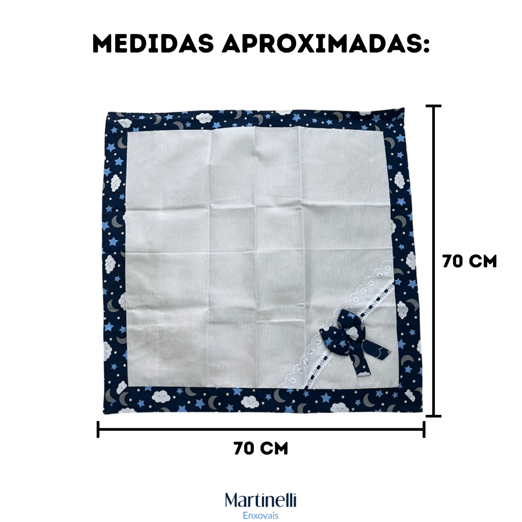 Bem Vindo(a) à Martinelli Enxovais! 💙 Você receberá: 1 Manta Piquet. A Manta Piquet com Borda Estampada e Laço é a escolha perfeita para envolver seu bebê em suavidade e elegância. Confeccionada em tecido piquet de alta qualidade, ela oferece um toque delicado e aconchegante para as horas de descanso. A borda estampada traz um charme extra, com desenhos modernos e coloridos, enquanto o delicado laço, que é cuidadosamente posicionado, confere um toque de sofisticação. Ideal para manter seu pequeno aquecido durante passeios, no berço ou em momentos de relaxamento, essa manta é versátil, leve e extremamente confortável. Além disso, seu design encantador a torna uma opção excelente para presentear. -Tecido piquet macio e respirável -Borda estampada com desenhos encantadores -Laço delicado para um toque extra de charme -Ideal para bebês de 0 a 12 meses -Fácil de lavar e manter Proporcione conforto e estilo ao seu bebê com essa manta que é puro carinho e delicadeza. ✨ Medidas Aproximadas: 70 cm x 70 cm. Composição: Tecido Piquet; Estampa Algodão; Passa fita e Laise. *As fotos são meramente ilustrativas, as cores podem variar de acordo com o monitor.* Em caso de dúvidas, ficamos à disposição!