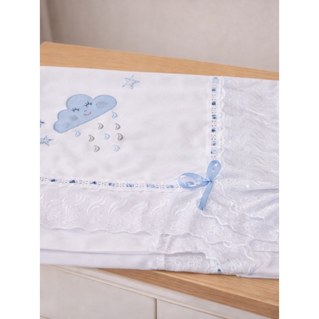 Manta Bebê Piquet com Faixa Bordada e Babado com Laise 100% Algodão passa fita várias estampas