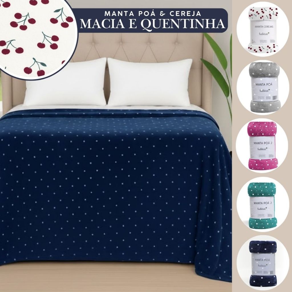 Manta Cobertor Casal Microfibra Macia Quentinha Antialérgica Aveludada 2,00 x 2,20 Poá Habitat