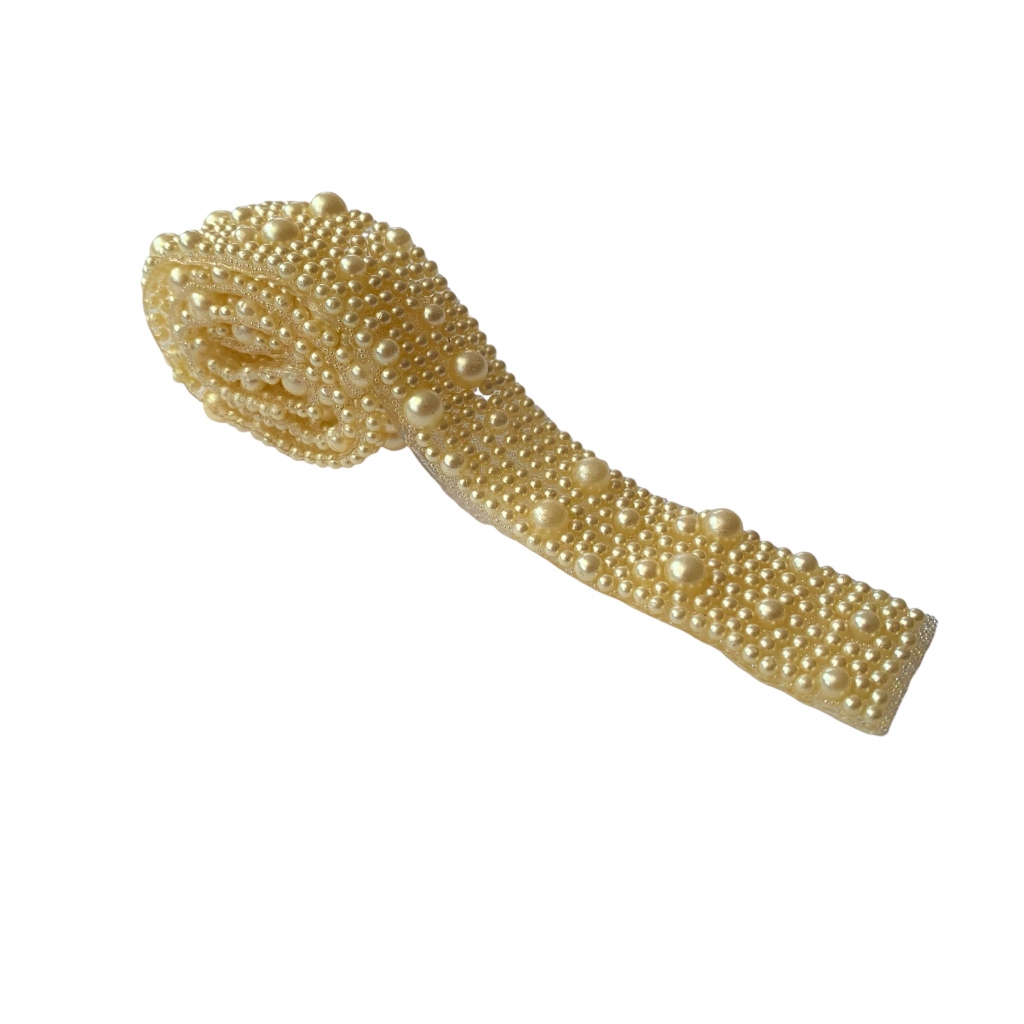 Manta Com Pérola para Artesanato Material: Borracha e Pérola Quantidade: 2 Unidades/Fileiras Tamanho: Aproximadamente 39 x 2,2 cm Pode ser usado para confecção de laços, tiaras e acessórios de cabelo em geral. Experimente também utilizar para dar um charme em qualquer item, como capinhas de celular, boddies de bebês, entre outros. Sua Criatividade é o limite!