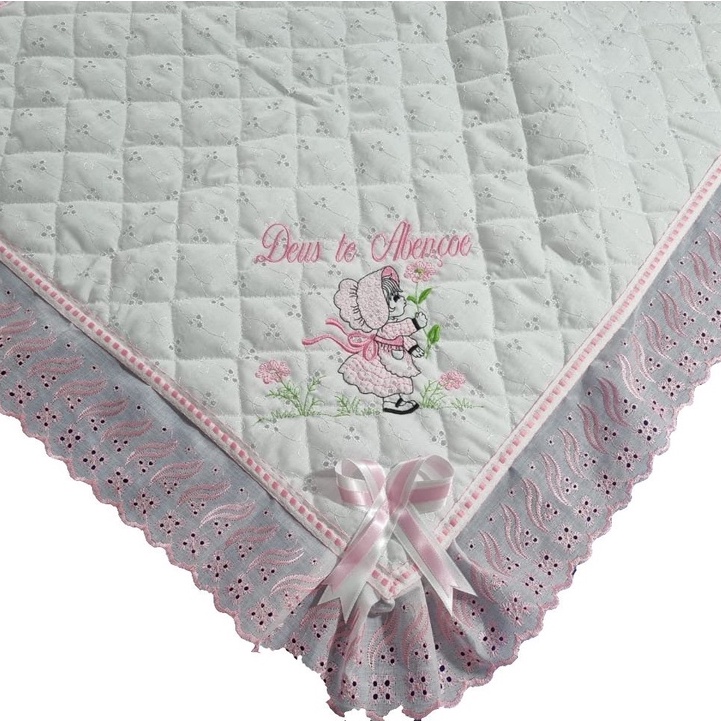 Manta De Lese Bordada Com Forro Camponesa Com Flores Infantil