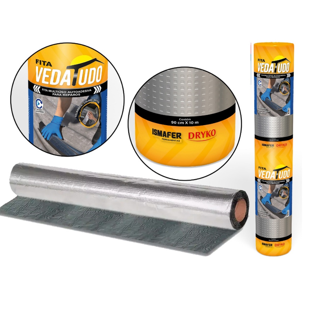 Manta Fita Asfáltica Auto Adesiva Vedatudo Aluminizada 3 Uni 90cm X 10m