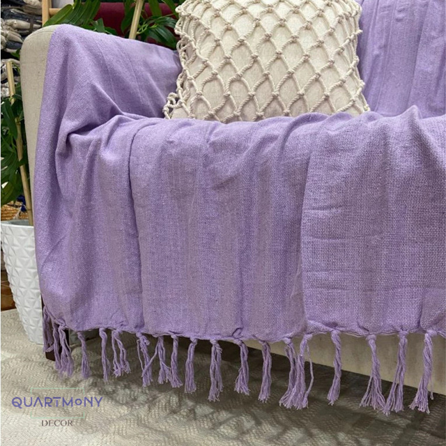 Manta Grande Para Sofá Cama Lilas Decorativa Artesanal Protetora Estilo Rustico Boho Chic
