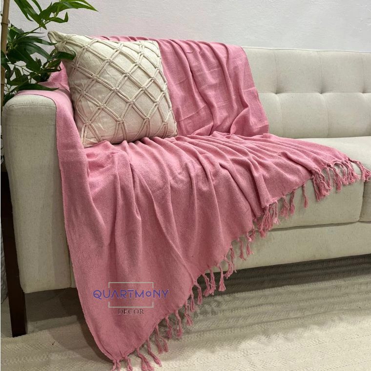 Manta Grande Sofa Cama Rosa Artesanal Algodão Decorativa Boho Chic Proteção Estilo Rustica Carnaval