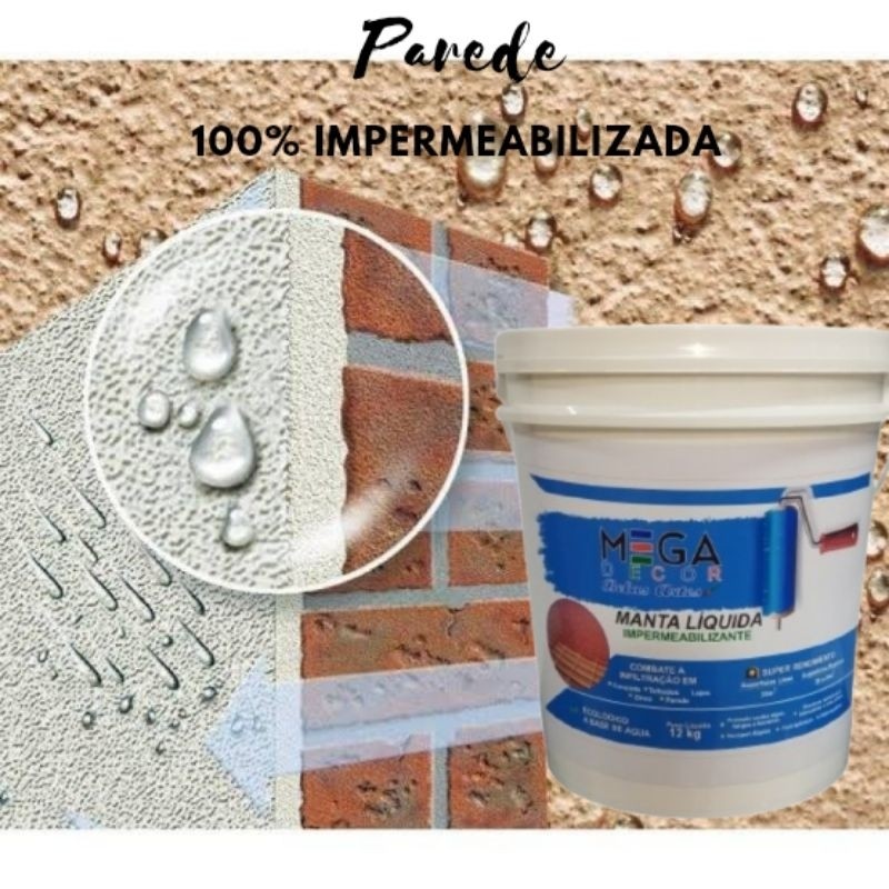 Manta Líquida 3,6kg Emborrachada Impermeabilizante MEGADECOR Várias Cores 1Kg e 3,6kg