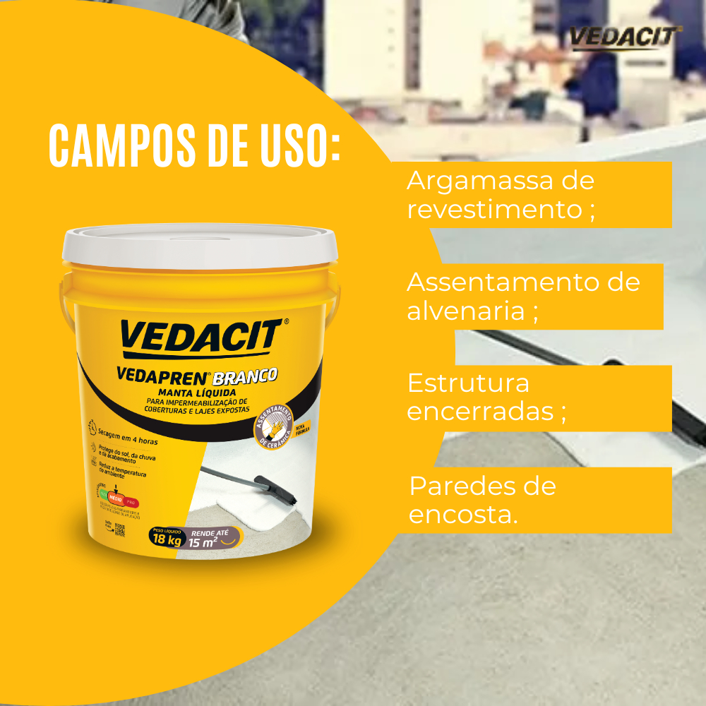 Manta Líquida Acrílica Impermeabilizante 18KG Vedacit Vedapren Branco Cobertura Laje Casa Prédio