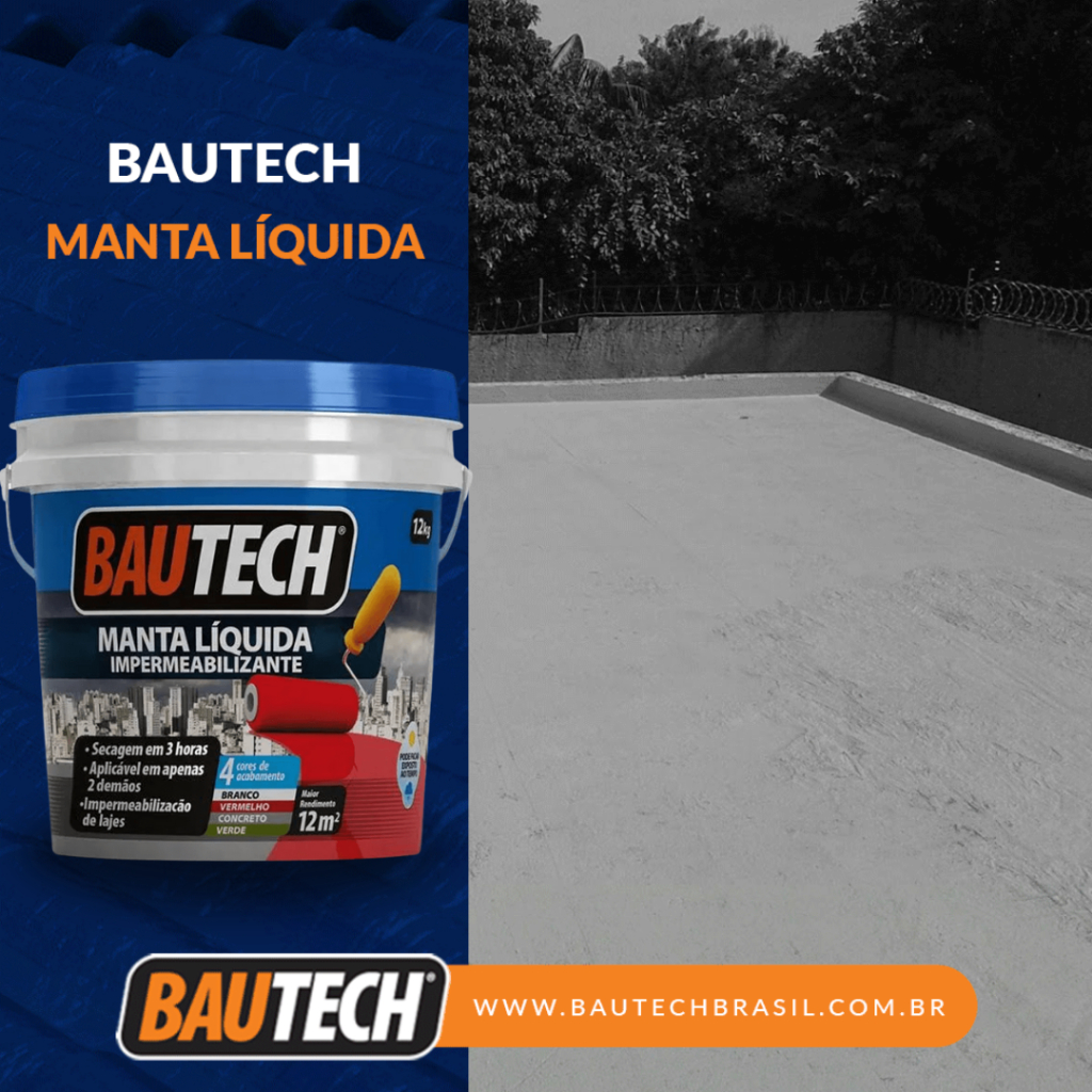 Manta Líquida Impermeabilizante Branco 12kg Bautech Acrílico Viscoso Balde Infiltração Selante Primer Rachadura Veda