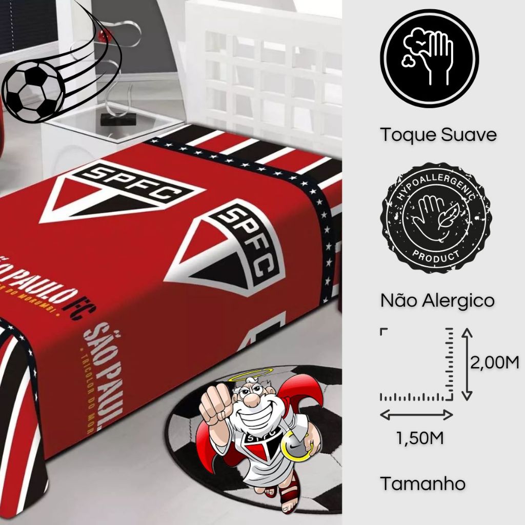 Manta Microfibra Antialergico Solteiro Time São Paulo Tricolor Jolitex