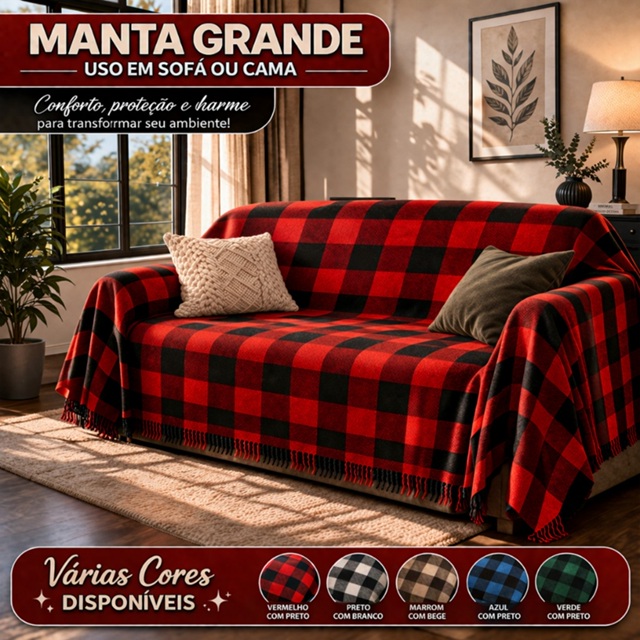 | Manta Sofá Super King Gigante 4,00 X 1,80m Decorativa E Capa Protet... | R$ 45,90 | — | 4.8/5 | 956 |