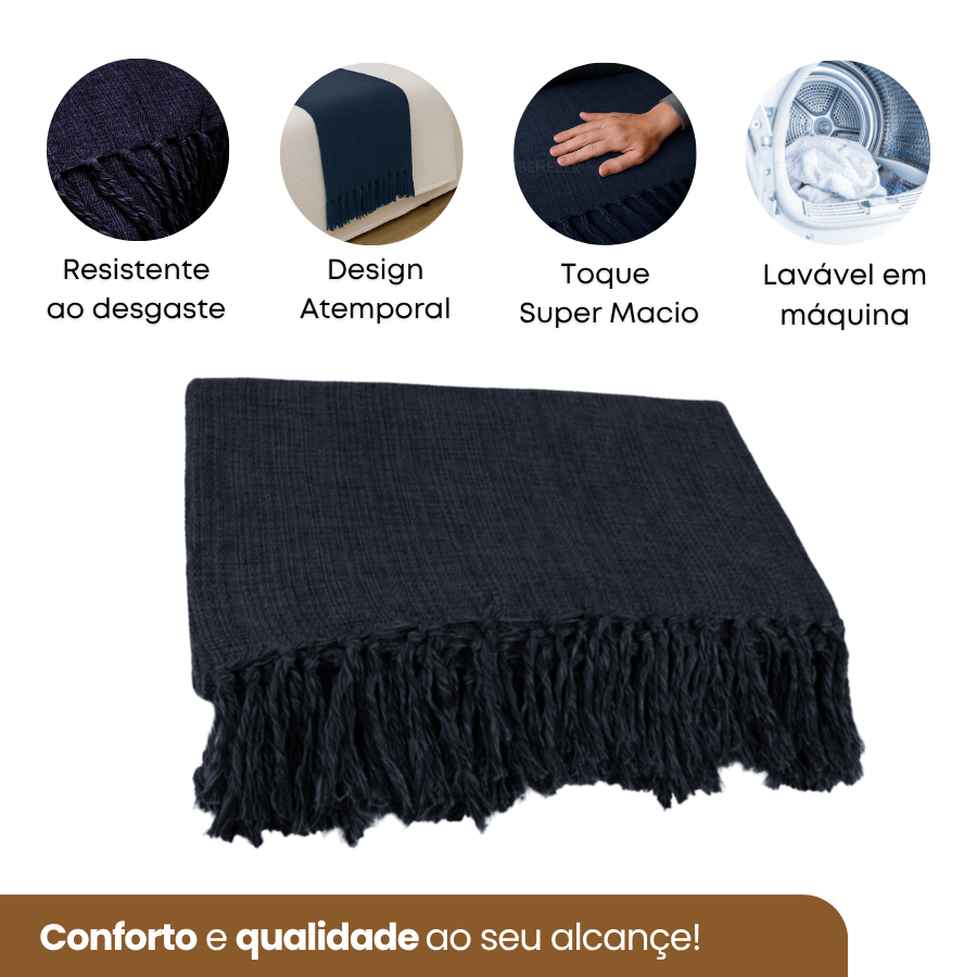 Manta Peseira Decorativa Cama e Sofá 2,20 x 1,70cm Algodão Confortável Toque Macio Luxo Premium Dê um toque de charme e conforto à sua sala ou quarto! Manta em 100% algodão é perfeita para quem busca praticidade com estilo. Pode ser usada como manta decorativa no sofá ou como peseira na cama, trazendo aconchego e elegância ao ambiente. Seu tecido é leve, macio e super agradável ao toque. O acabamento com franjas e nós dá um toque artesanal que transforma qualquer espaço, da sala ao quarto, com beleza e delicadeza. BENEFÍCIOS: - Tecido 100% algodão para maior conforto; - Tecido leve, silencioso e durável para o uso diário; - Super macia ao toque, ideal para relaxar e decorar; - Pode ser usada no sofá ou na cama como peseira; - Design atemporal que harmoniza com qualquer ambiente. ESPECIFICAÇÕES: - Medida: 2,20m x 1,70m; - Composição: 100% Algodão; - Toque: Suave, macio e aconchegante; - Acabamento: Franjas com nós decorativos. PERGUNTAS FREQUENTES: *Posso usar como peseira de cama? Sim! Ela tem o tamanho ideal para ser usada aos pés da cama de casal, deixando o quarto mais bonito e acolhedor. *Também serve para sofá? Com certeza! Ela é perfeita para cobrir o sofá, proteger e decorar ao mesmo tempo. *O tecido é macio mesmo? Sim! O algodão proporciona um toque suave e confortável, ótimo para relaxar. *Posso lavar na máquina? Sim, recomendamos o uso do ciclo suave e sabão neutro para maior durabilidade. Transforme sua casa com uma manta versátil, elegante e cheia de personalidade!