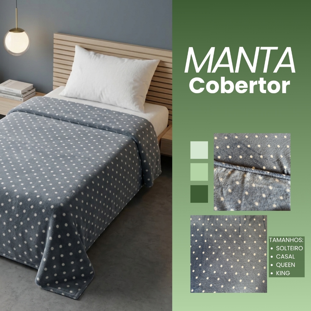 | Manta Solteiro Microfibra Coberta Antialérgica Macia Veludo Toque M... este produto | R$ 47,60 | 15% | 5.0/5 | — |