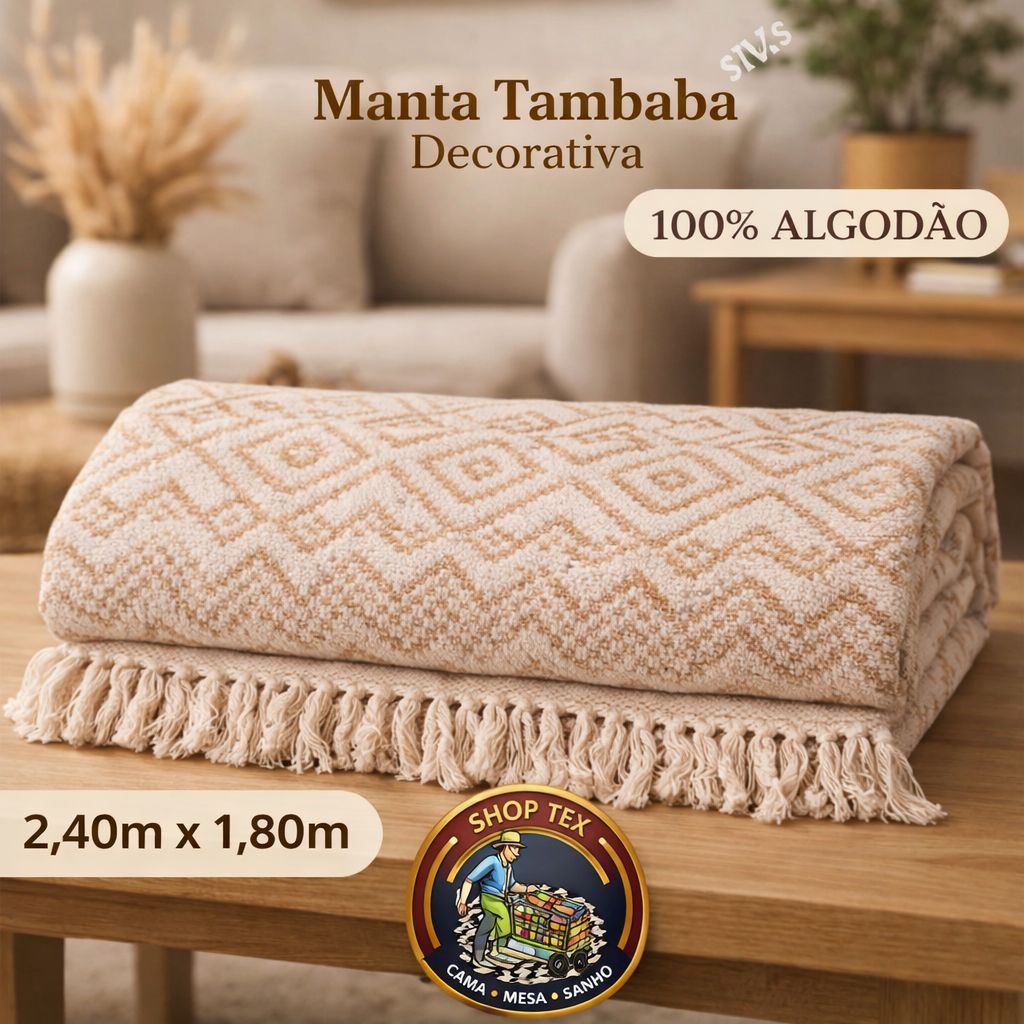 🧶 Manta Tambaba Decorativa 100% Algodão 2,40x1,80 m — Grande, Artesanal e Direto da Fábrica Adicione conforto e elegância ao seu ambiente com nossa Manta Decorativa de Algodão. Feita manualmente em tear artesanal, é perfeita para proteger o sofá, decorar a sala ou até servir como coberta leve. Seu tecido 100% algodão garante maciez, resistência e beleza natural 🌿 ✨ Destaques do Produto 🧵 Composição: 100% algodão natural 📐 Tamanho: 2,40 m × 1,80 m — modelo grande ⚖️ Peso: aprox. 1,15 kg 🪡 Produção artesanal: acabamento manual com cuidado e qualidade 🎨 Versátil: use como capa de sofá, manta decorativa ou colcha 🌿 Tecido resistente: não solta tinta 🏭 Envio direto da fábrica, com controle de qualidade garantido 💬 Atendimento Tem dúvidas? Nossa equipe da SHOP TEX Atacado está pronta para te atender e oferecer todo o suporte pelo chat 💛