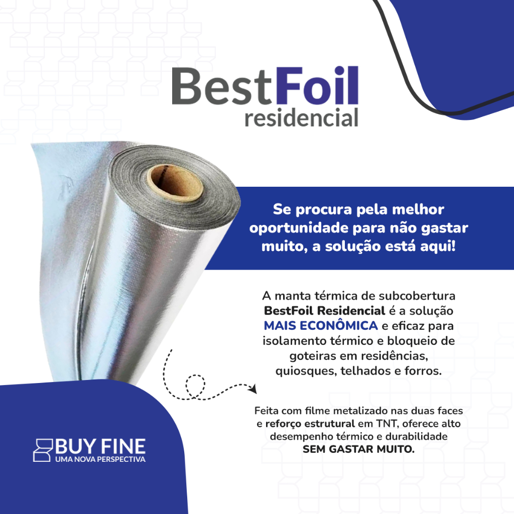 Manta térmica mais em conta! Trabalhamos com mantas de todos os modelos! Oferta Especial: Manta Térmica de Subcobertura Dupla Face 50m² BESTFOIL RESIDENCIAL. **Descrição do Produto:** Esta manta térmica de subcobertura BESTFOIL RESIDENCIAL é a solução MAIS ECONÔMICA e eficaz para isolamento térmico e bloqueio de goteiras em residências, quiosques, telhados e forros. Feita com filme metalizado nas duas faces e reforço estrutural em TNT, oferece alto desempenho térmico e durabilidade SEM GASTAR MUITO. Se procura pela melhor oportunidade para não gastar muito, a solução está aqui! **Características Técnicas:** - Estrutura: Tecido não tecido (TNT) - Faces Aluminizadas: Dupla face (2 faces) - Espessura: 0,15mm - Largura do Rolo: 1m - Metragem Total: 50m² **Princípios da Oferta:** 1. Descrição Detalhada: A manta térmica laminada possui três camadas, incluindo uma interna de polipropileno TNT e duas camadas de filme metalizado. Desenvolvida para proporcionar controle térmico eficaz em diversas aplicações, garantindo alta resistência e baixo custo. 2. Uso Versátil: Ideal para isolamento térmico em residências e quiosques, aplicação em telhados e forros, e como tecido para sacolas térmicas. 3. **Vantagens Competitivas:** - Mais econômica do mercado (INSTALE MANTAS TÉRMICAS SEM GASTAR MUITO) - Reflete 97% da radiação solar, reduzindo o consumo de energia com ar condicionado. - Eficiente e durável, com instalação rápida e fácil. - Oferece controle térmico interno e bloqueio da temperatura vinda do telhado. 4. **Instruções de Instalação:** A manta deve ser colocada abaixo do ripamento da telha ou entre os ripamentos. Recomenda-se manter uma distância mínima de 5 cm da telha para melhor isolamento térmico. Sobreponha as faixas em 10 cm e utilize a fita de emenda para uma instalação segura. 5. **Informações Importantes:** A manta não é autoadesiva e não é indicada para uso externo prolongado. Verifique todas as especificações antes da compra para garantir compatibilidade e eficiência. **Dúvidas Frequentes:** - Consulte as formas de pagamento disponíveis no anúncio. - Temos outros materiais disponíveis, com outras classificações de uso. consulte-nos para pronta entrega. - Em caso de recebimento de item diferente ou danificado, recuse a entrega e entre em contato conosco. **Atenção:** Não instale produtos danificados. Entre em contato conosco imediatamente se houver problemas com seu pedido. Também dispomos de outras linhas de produtos em ráfia trançada e super reforçada. Além disso trabalhamos com mantas em alumínio também! Consulte nossos vendedores! Descrição 2 - Manta Térmica BESTFOIL RESIDENCIAL TNT Descrição do Produto: Procurando uma solução econômica e eficaz para isolamento térmico e proteção contra goteiras? A Manta Térmica de Subcobertura BESTFOIL RESIDENCIAL é a escolha ideal. Com filme metalizado nas duas faces e reforço em TNT, essa manta oferece alto desempenho térmico e durabilidade sem comprometer seu bolso. Se você deseja uma solução acessível para seus projetos de isolamento térmico, encontrou a resposta! Descrição Detalhada: Esta manta térmica laminada possui três camadas, incluindo uma interna de polipropileno TNT e duas camadas de filme metalizado. Oferece controle térmico eficaz em diversas aplicações, com alta resistência e baixo custo. Uso Versátil: Ideal para isolamento térmico em residências, quiosques, telhados, forros e até como tecido para sacolas térmicas. Vantagens Competitivas: A mais econômica do mercado (Instale mantas térmicas sem gastar muito). Reflete 97% da radiação solar, reduzindo o consumo de energia com ar condicionado. Eficiente, durável, instalação rápida e fácil. Proporciona controle térmico interno e bloqueio da temperatura do telhado. Instruções de Instalação: Coloque a manta abaixo do ripamento da telha ou entre os ripamentos, mantendo uma distância mínima de 5 cm da telha para melhor isolamento. Sobreponha as faixas em 10 cm e utilize a fita de emenda para uma instalação segura. Informações Importantes: A manta não é autoadesiva e não é recomendada para uso externo prolongado. Verifique todas as especificações antes da compra para garantir compatibilidade e eficiência. Dúvidas Frequentes: Consulte as formas de pagamento disponíveis no anúncio. Temos outros materiais disponíveis, com diferentes aplicações. Consulte-nos! Em caso de recebimento de item danificado, recuse a entrega e entre em contato conosco imediatamente. Atenção: Não instale produtos danificados. Entre em contato imediatamente se houver problemas com seu pedido. Temos também outras linhas de produtos, incluindo produtos com ráfia trançada e mantas térmicas para telhado em alumínio. Consulte nossos vendedores para mais informações!