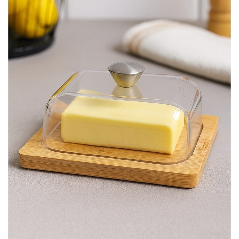Mantegueira com Tampa de Acrílico e Base de Bambu – Elegante e Funcional Decoração Cozinha