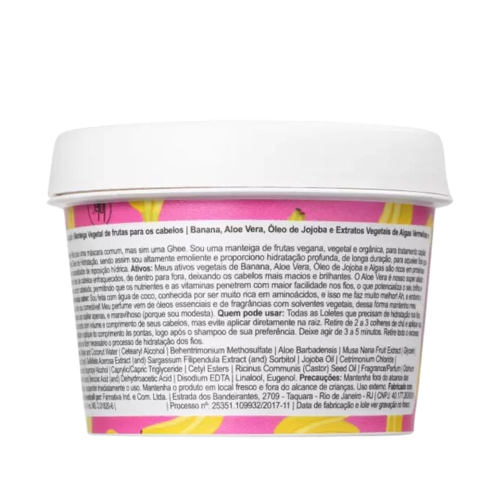 A Manteiga Capilar Lola Be(M)dita Ghee Hidratação é uma máscara de hidratação, para cabelos ressecados, opacos e sem vida. Sua poderosa fórmula com ativos vegetais da banana, aloe vera, óleo de jojoba e algas, é rica em proteínas que ajudam a fortalecer e hidratar os cabelos enfraquecidos, deixando-os mais macios e brilhantes. Be(M)dita Ghee Hidratação proporciona uma hidratação babadeira para nenhum cabelo ressecado e opaco botar defeito. Ela devolve todos os nutrientes que seu belo cabelo precisa e de quebra ainda deixa aquele brilho mara. Além disso a Manteiga Capilar Lola Be(M)dita Ghee Nutrição é liberada para as técnicas Low e No Poo, além de possuir uma suave fragrância de óleos essenciais. Ativos: Banana, Óleo de Jojoba e Algas: ricos em proteínas que fortalecem e hidratam os cabelos fracos, de dentro pra fora, deixando seus fios macios e brilhantes. Aloe Vera: é um forte aliado para a saúde dos cabelos e couro cabeludo, permitindo que os nutrientes e as vitaminas penetrem com maior facilidade nos fios, o que potencializa o brilho e beleza. Água de Coco: rica em aminoácidos, proporciona maciez e suavidade aos fios. Benefícios: - Liberada para Low e No Poo; - Fragrância de óleos essenciais; - Textura pronta para aplicação, não há necessidade de aquecer. Modo de usar: Retire de 2 a 3 colheres de chá da Manteiga Capilar Lola Be(M)dita Ghee Hidratação e aplique nas mãos. Emulsione para espalhar e aplique do comprimento às pontas, logo após o shampoo de sua preferência. Deixe agir de 3 a 5 minutos. Retire todo o excesso. Não é necessário finalizar com condicionador. Use semanalmente ou quando se fizer necessário o processo de hidratação dos fios. Sobre a Marca: A Lola Cosmetics surgiu a partir de uma escolha: ser feliz! Levar a vida com bom humor, ainda que nada pareça dar certo. Nem mesmo o seu cabelo. Fazem o papel de levar até você sensações e cuidados especiais, cores vibrantes, textos motivadores e bem humorados, provocando um sentimento único e motivador. A Lola é uma empresa Vegana que se preocupa com os animaizinhos desse mundo, isso inclui serem contra testes em cachorros, gatos e outros bichinhos.