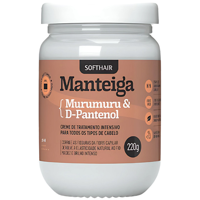 Manteiga Murumuru E D-Pantenol Creme Tratamento Capilar Maciez E Brilho Soft Hair 220g