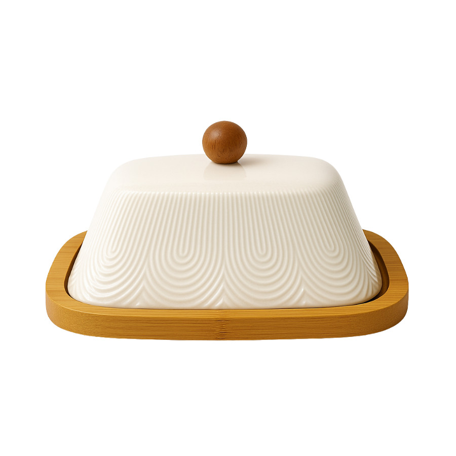Manteigueira Em Porcelana Com Base Bambu Porta manteiga Oasis