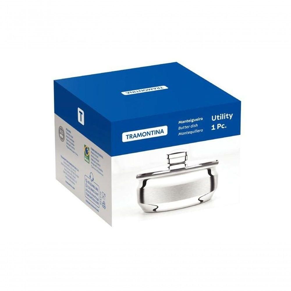Manteigueira Tramontina Redonda 8,5cm Em Aço Inox Com Tampa A Manteigueira Tramontina Redonda em Aço Inox com Tampa dará um charme único para a sua mesa. Assim, o seu café da manhã e da tarde ficarão mais elegantes. A sua família e amigos irão adorar! A mantegueira em aço inox é prática, durável e com um lindo acabamento em brilho. Uma peça indispensável da linha Utility para quem adora uma mesa bonita e charmosa. Recomendações de Uso: Modo de Uso: Use apenas sabão ou detergente e uma esponja macia. Outros tipos de produto como palha de aço, poderão riscar ou prejudicar o brilho das peças. Enxágue cada item a fim de remover totalmente os resíduos dos produtos de limpeza, que, por serem abrasivos, podem danificar o inox. Sempre que possível, use água quente, pois renova o brilho das peças. Após a lavagem, enxugue imediatamente as peças, caso contrário, as substâncias químicas da água (cloro) poderão causar manchas. Evite atrito entre as peças durante o processo de lavagem e no armazenamento, para mantê-las sem riscos. Evite o do produto com superfícies quentes, pois elas provocam a descoloração do material. Não guarde as peças em locais úmidos. A umidade também provoca manchas. - ;Foto meramente ilustrativa. Informações Adicionais: - Acabamento em brilho; - Ideal para servir à mesa; - Higiênica e de fácil limpeza; - Beleza e praticidade em seu design; - Pode ser lavada diariamente na máquina de lavar louças; - Totalmente feita de aço inox, por isso não solta nenhum resíduo nos alimentos, mantendo-os saudáveis; - Altamente durável mantém suas características , preservando a beleza, a higiene e a durabilidade do material. ;