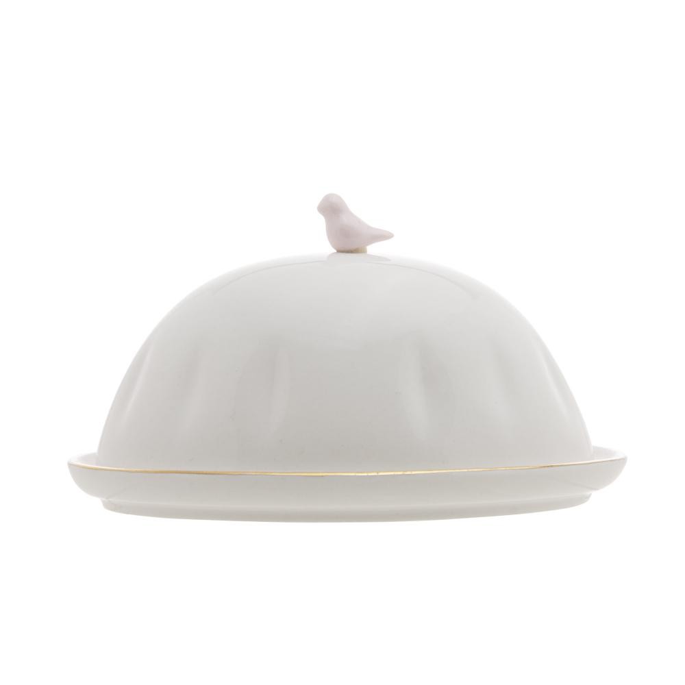 Manteigueira Wolff Birds de Porcelana Branco 16cm x 10cm