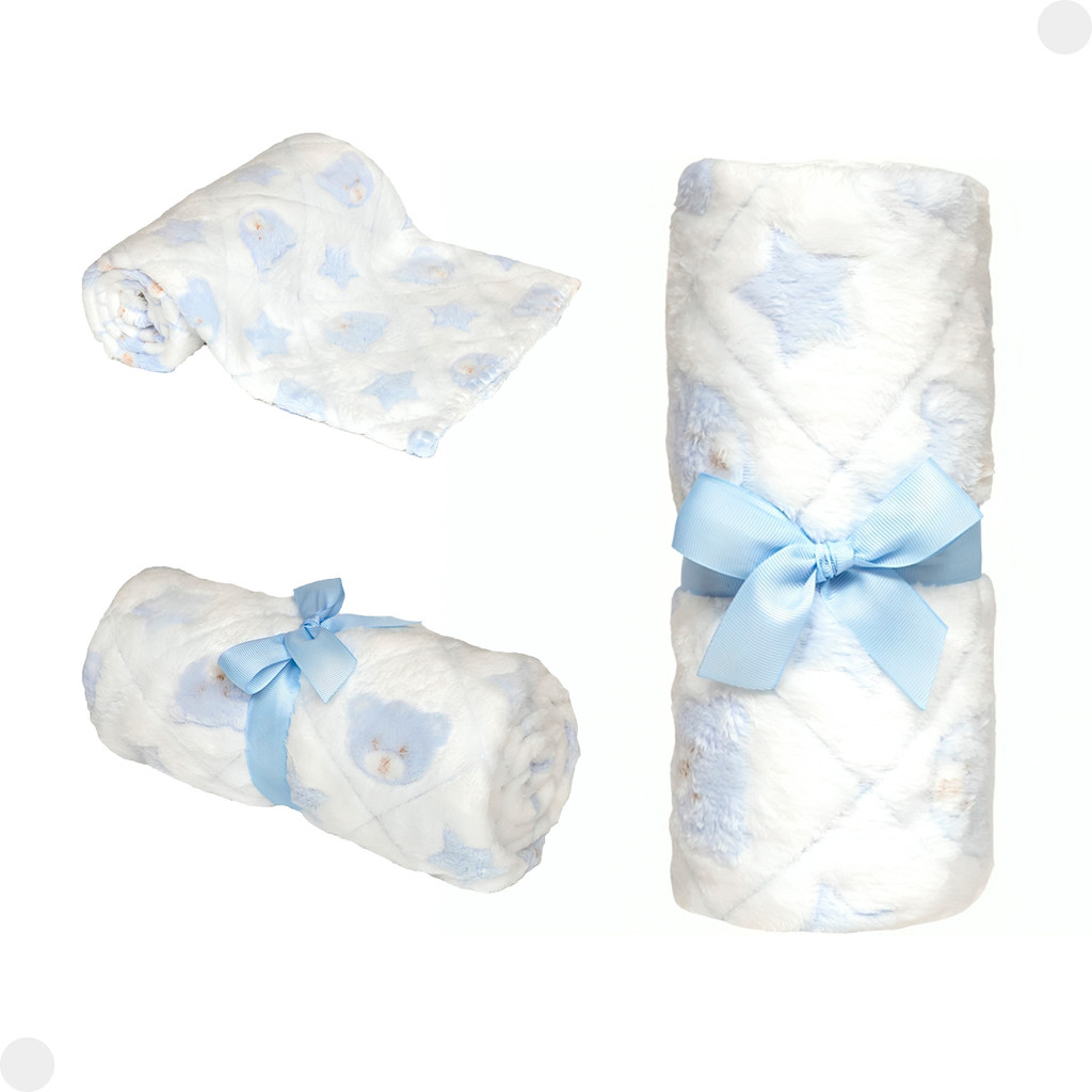Mantinha Infantil Ursinho Azul Bege Rosa 18071 - Buba